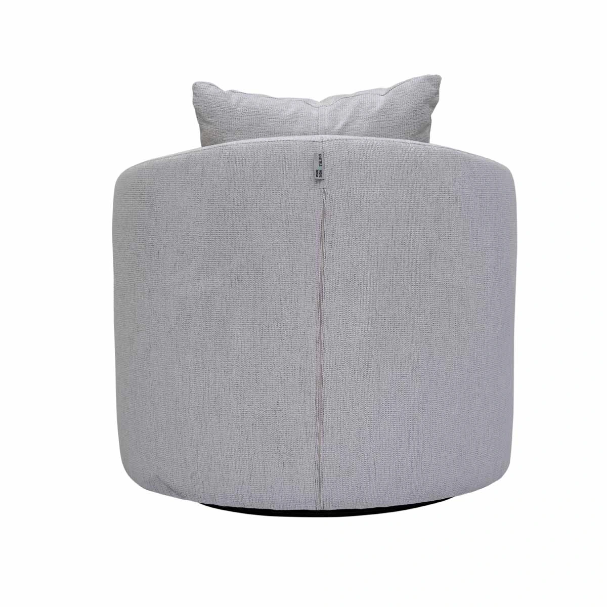 Off-White Oval Armchair with Swivel Base in Cottage Fabric