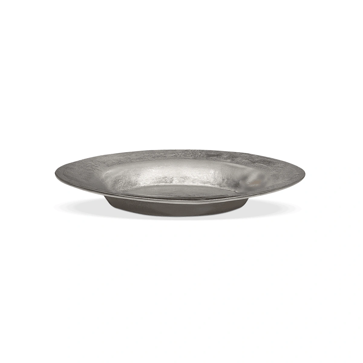 Introducing the Raw Silver Oval Flare Rim Bowl, a small-sized stunner that combines modern luxury with practicality.