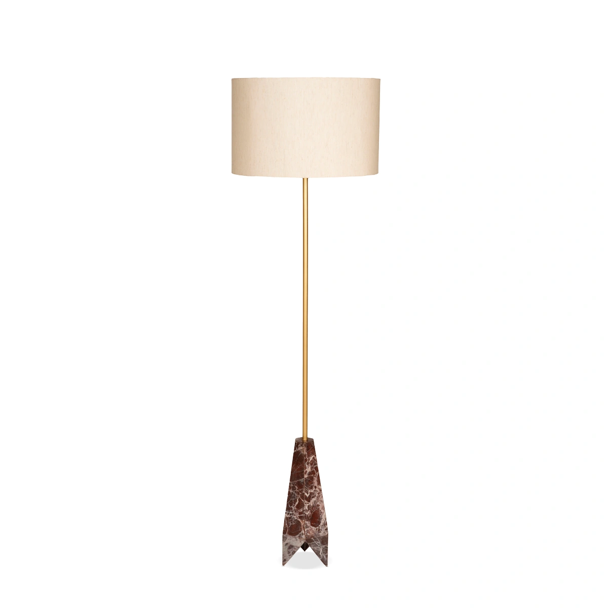 Oxy Beige Floor Lamp with Red Cherry Marble Base and Gold Finish Steel Frame