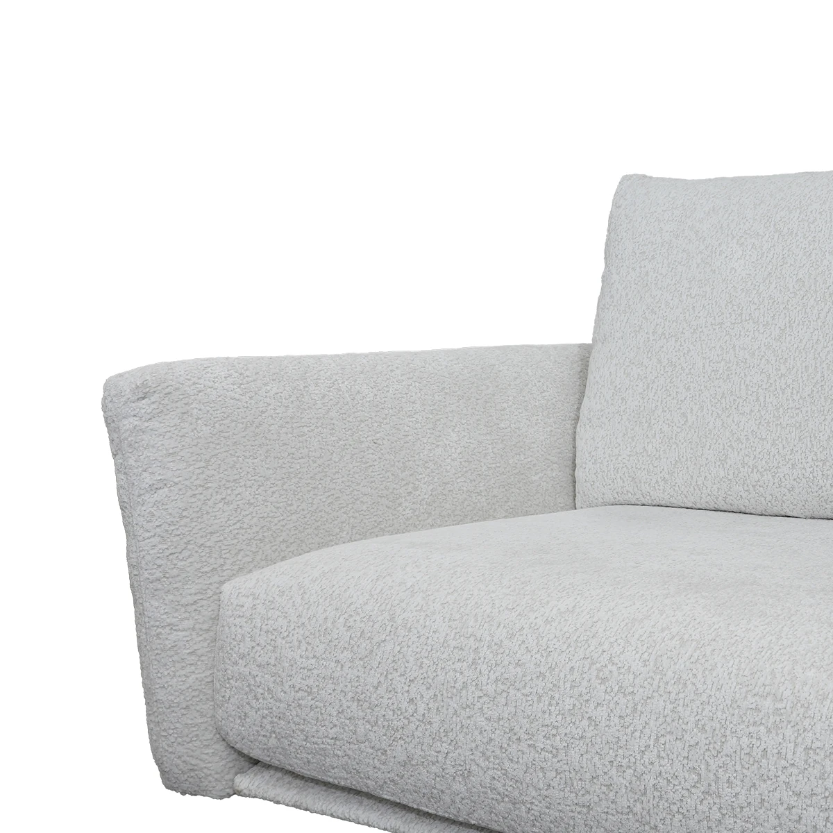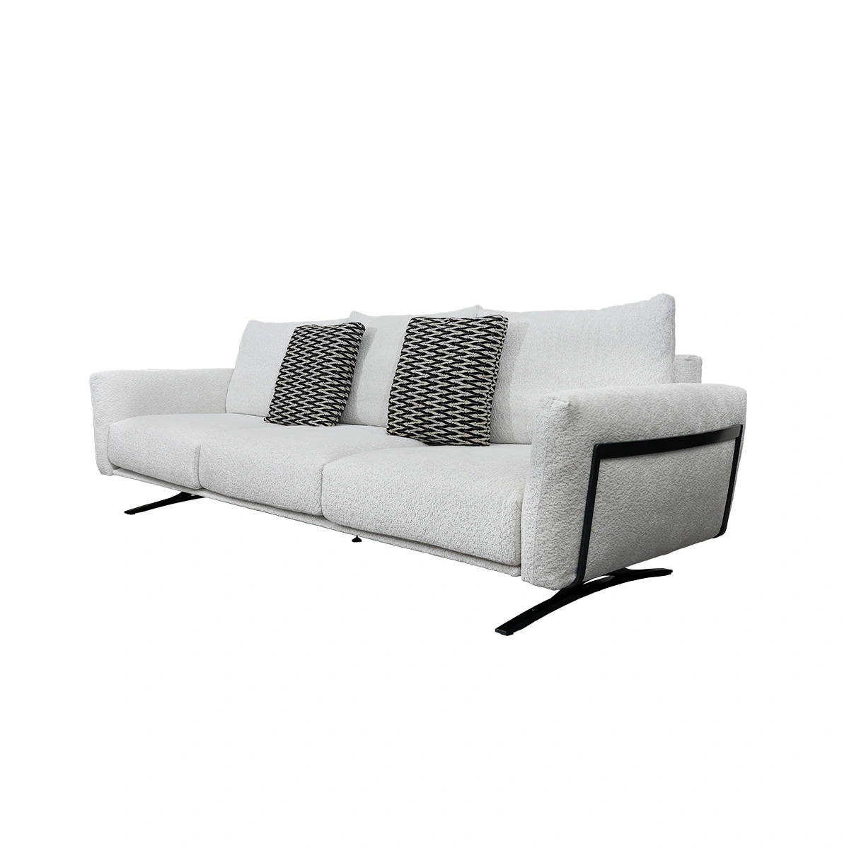 Crafted with a durable frame of pine wood and plywood, this sofa provides reliable strength and long-term stability. The main upholstery uses Felix 5994 fabric, while the extra cushions feature the textured Fiore 5630 blend for added comfort and visual depth. Back cushions are filled with a premium goose-feather and silicone blend, offering a plush, sink-in feel. The armrests are reinforced with painted steel for added durability, and metal legs in color 20 give the sofa a sleek, modern foundation.