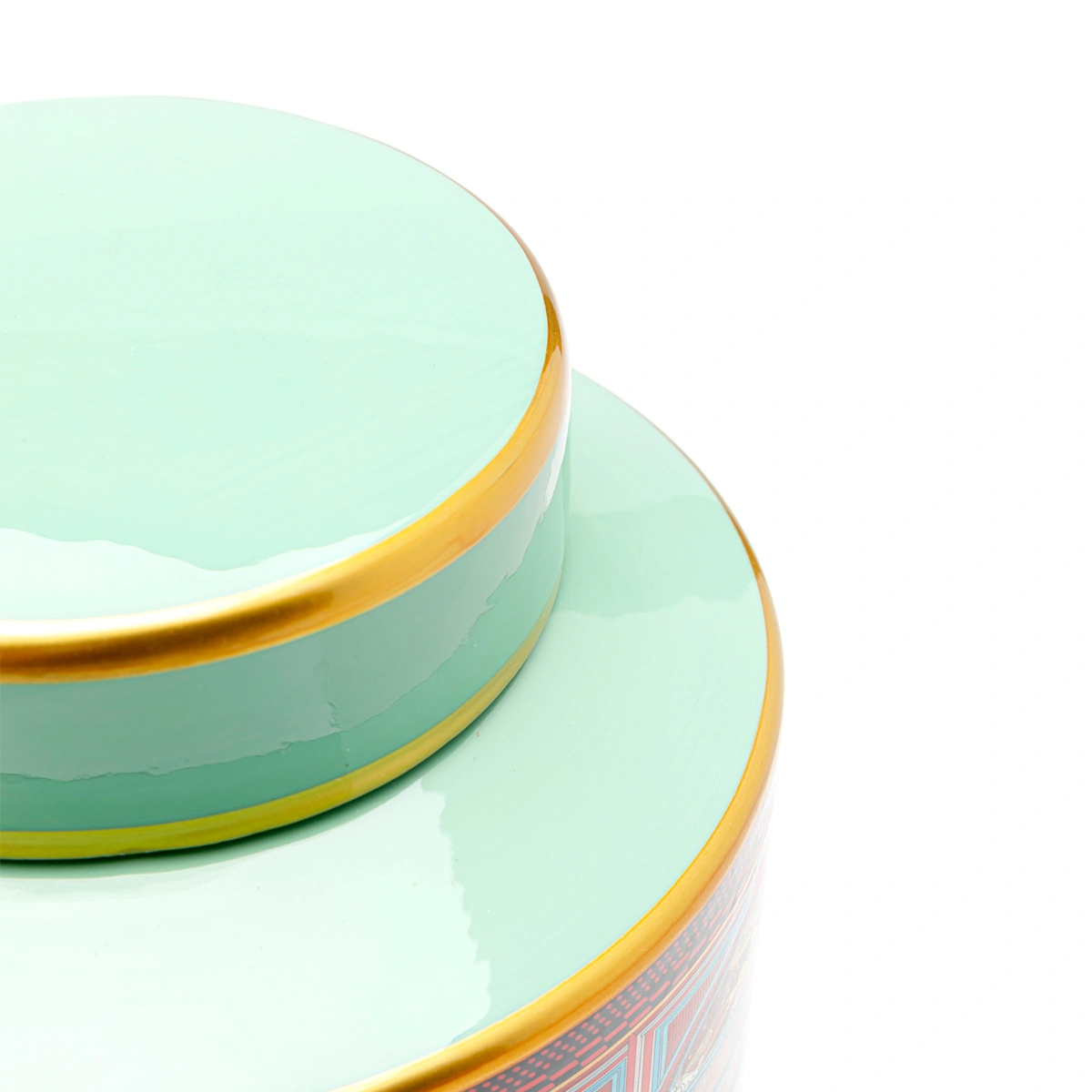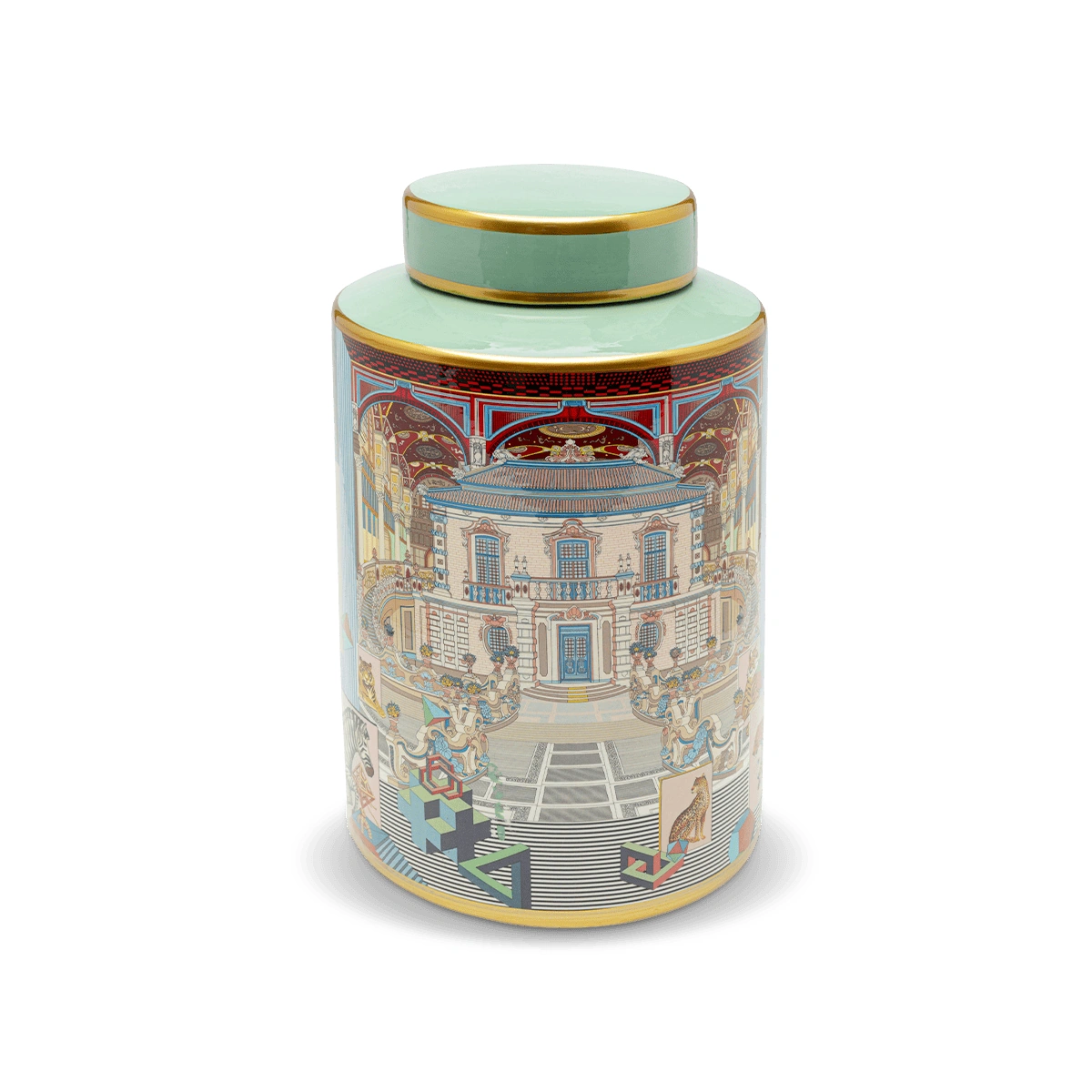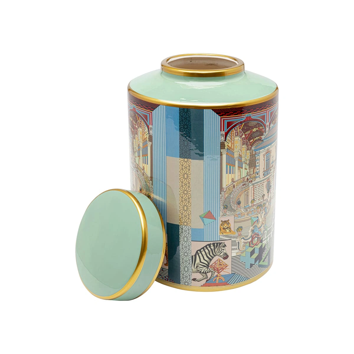 Palazzo Deco Porcelain Jar in Multicolor, Lacquered & Decal, 25 x 17 x 17 cm
