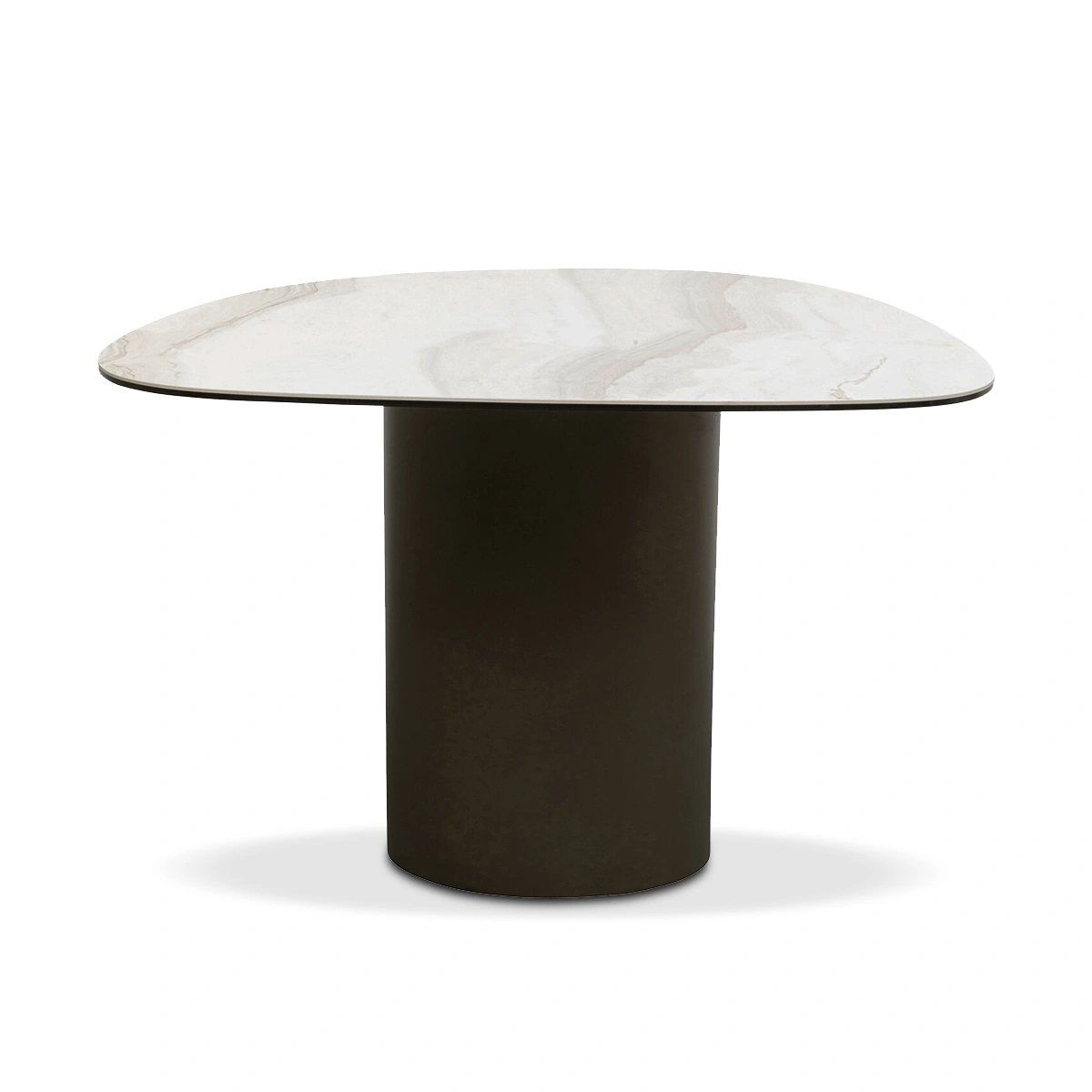 • The highlight of the coffee table is the organically shaped ceramic table top with light marbling