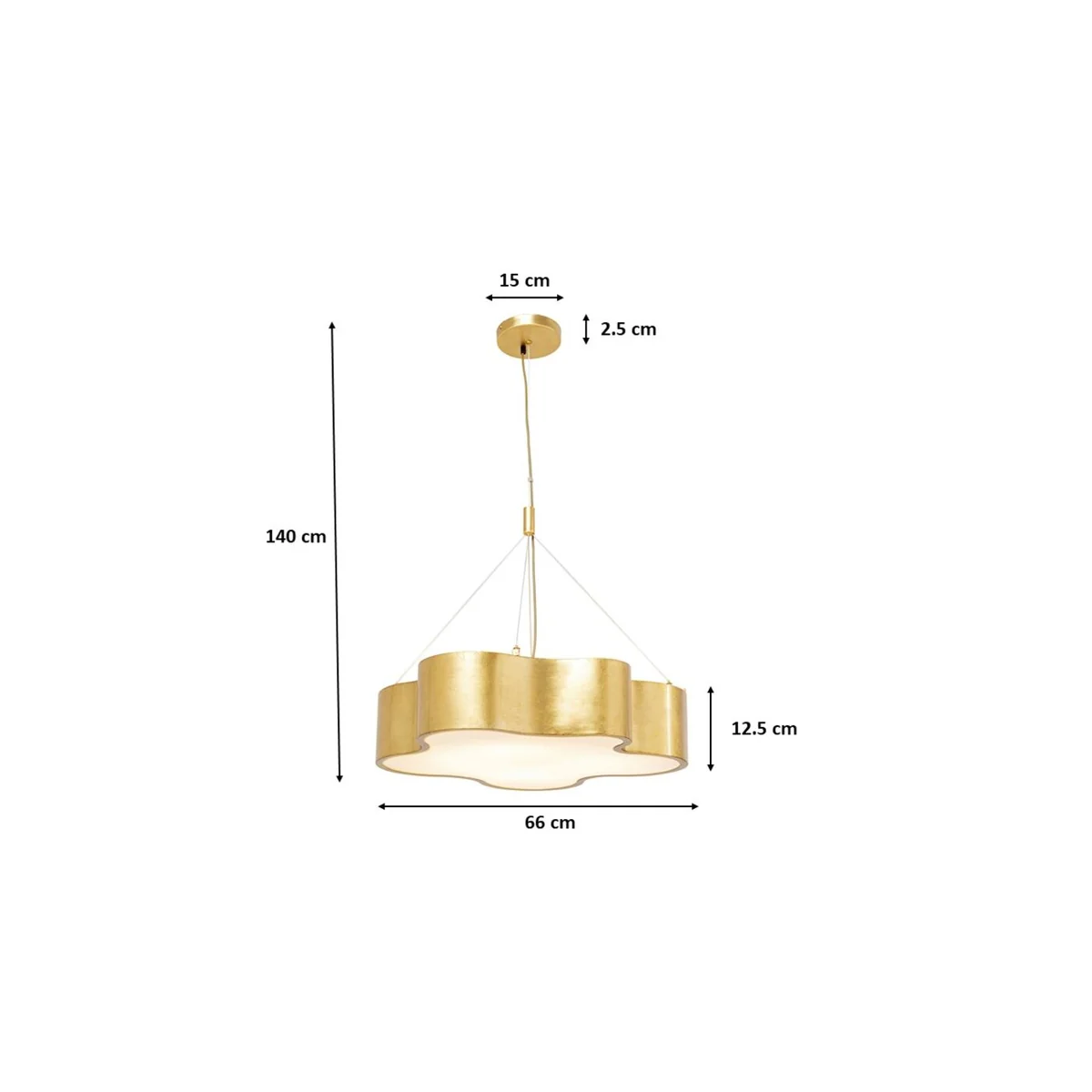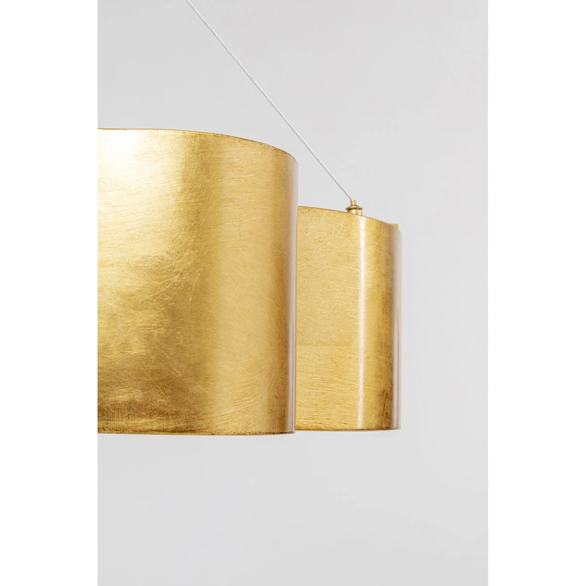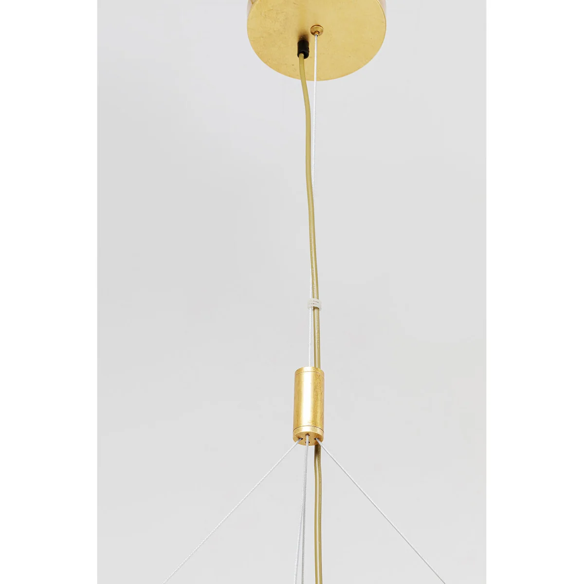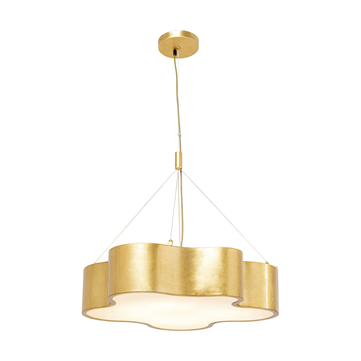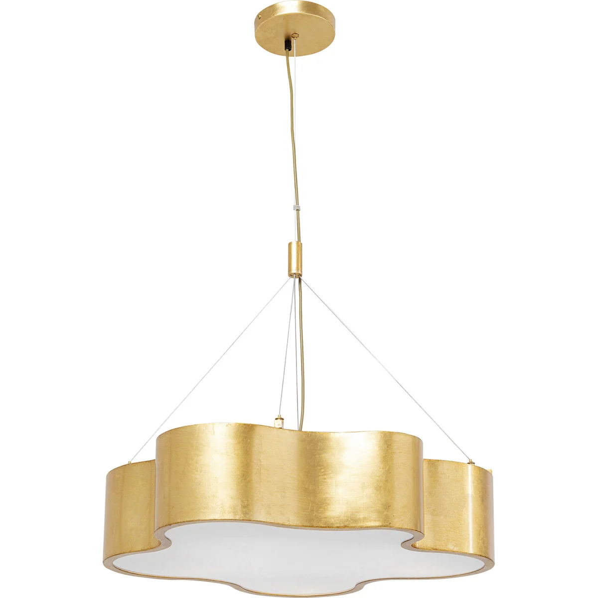 The attractive pendant lamp with its gentle curves in luxurious gold adds pure glamour to every room. A real treasure that provides indirect and glare-free light with its four light sources above the dining table, in the living room, hallway or bedroom.