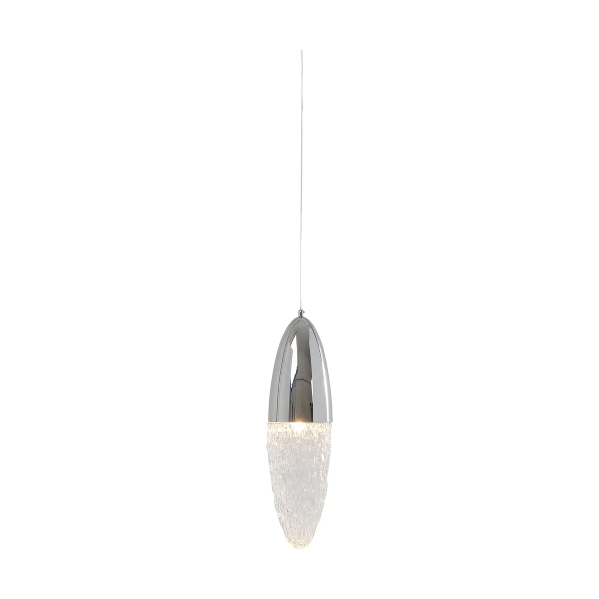 Introducing the Frozen Chrome Pendant Lamp in clear glass — a spectacular focal point for any room. This pendant light commands attention with its sleek silver chrome finish and intricate design.
