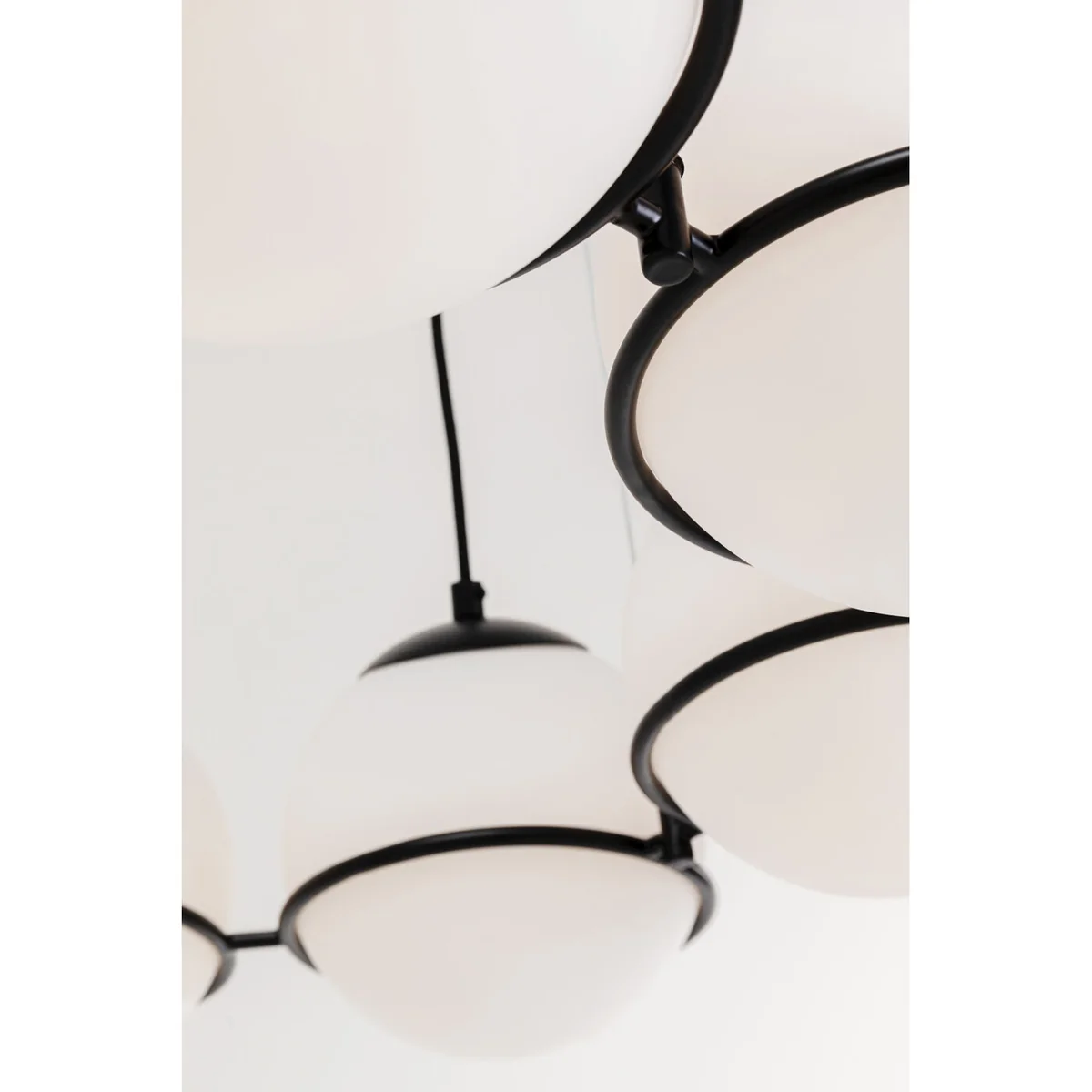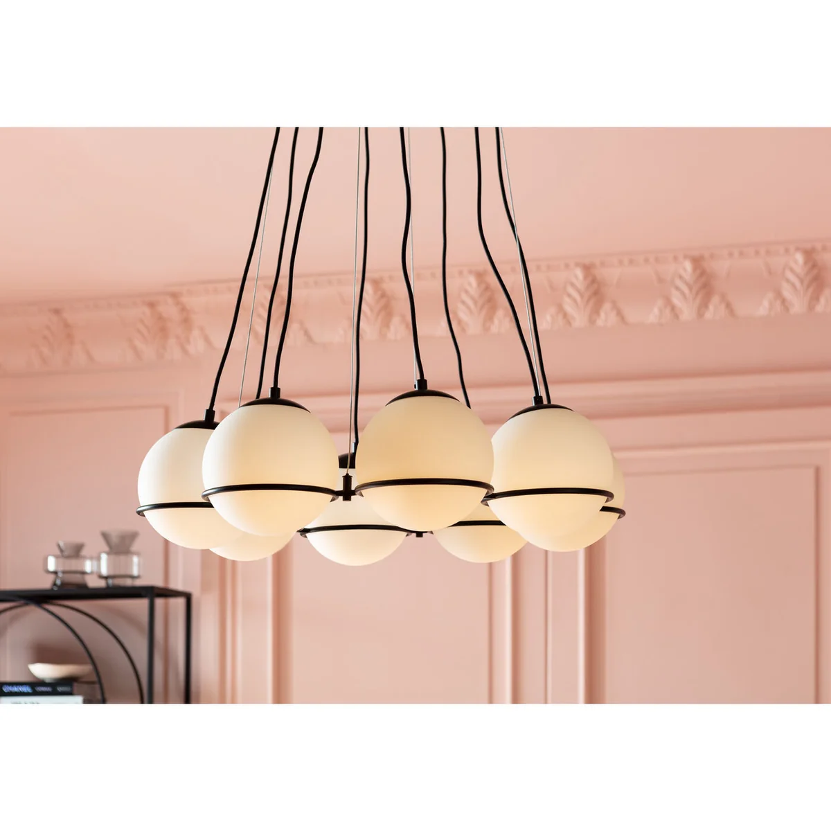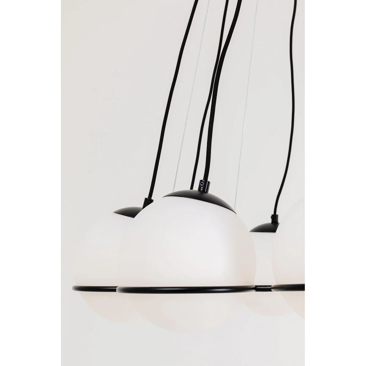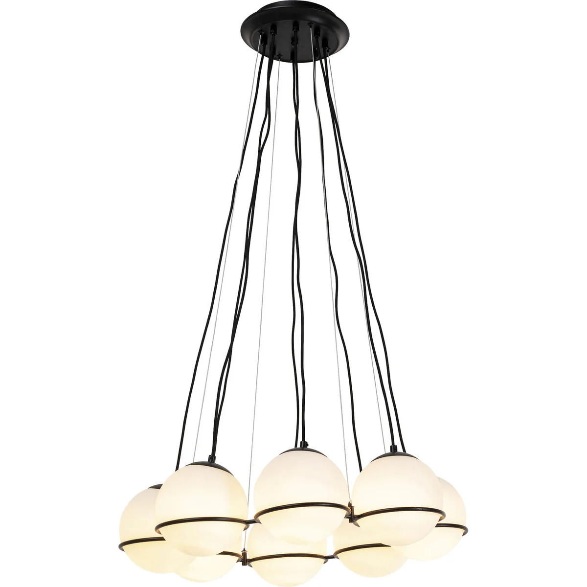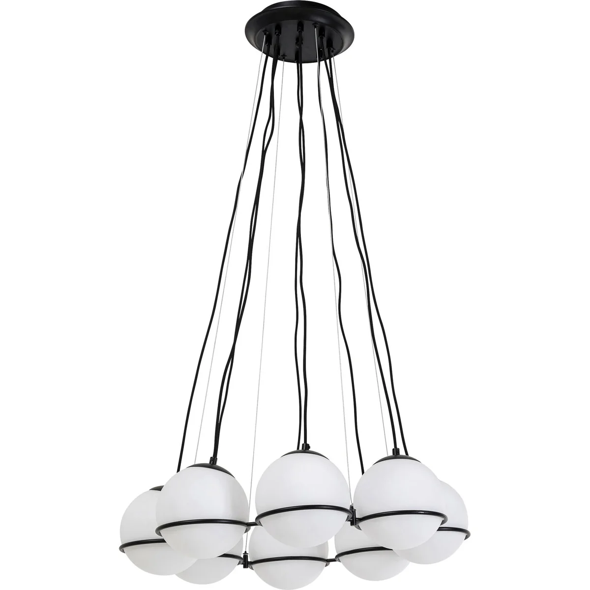 - Pendant lamp made of high-quality materials in the industrial style - Large format lighting object: as if made specially for high ceilings in old buildings and large open rooms that need focal points - The pendant lamp is height-adjustable from 80 to 130 cm - Glare-free indirect light thanks to the eight lampshades made of glass - With this eye-catcher you can create wonderful islands of light - for example above a dining table, a sofa or a coffee table in the living room