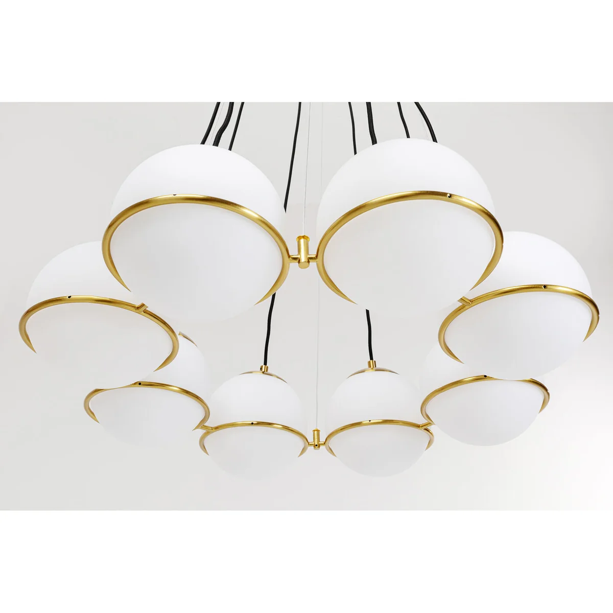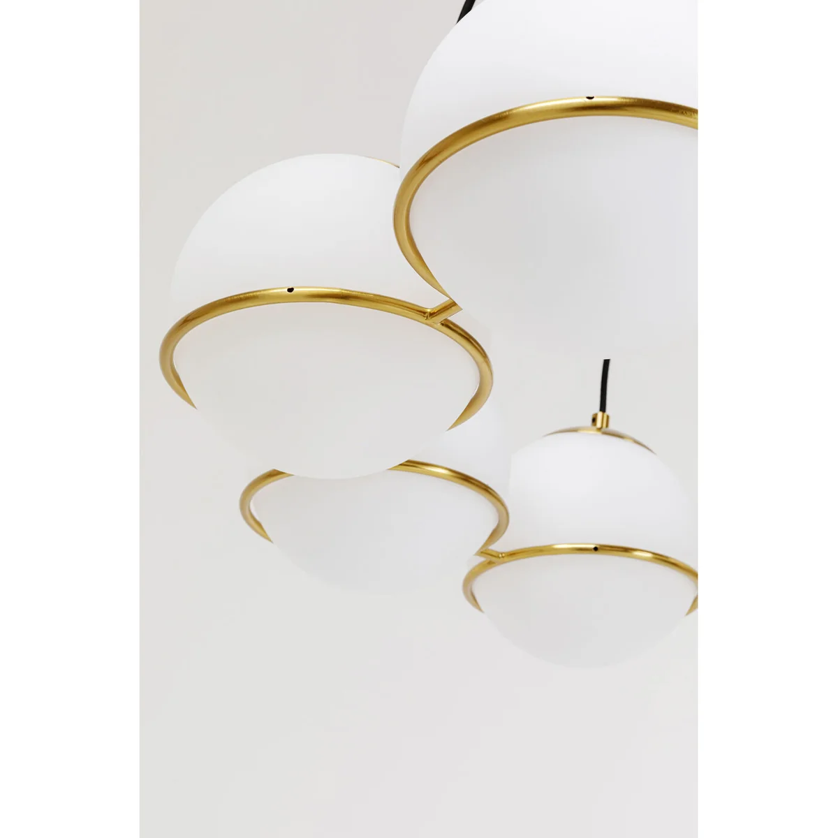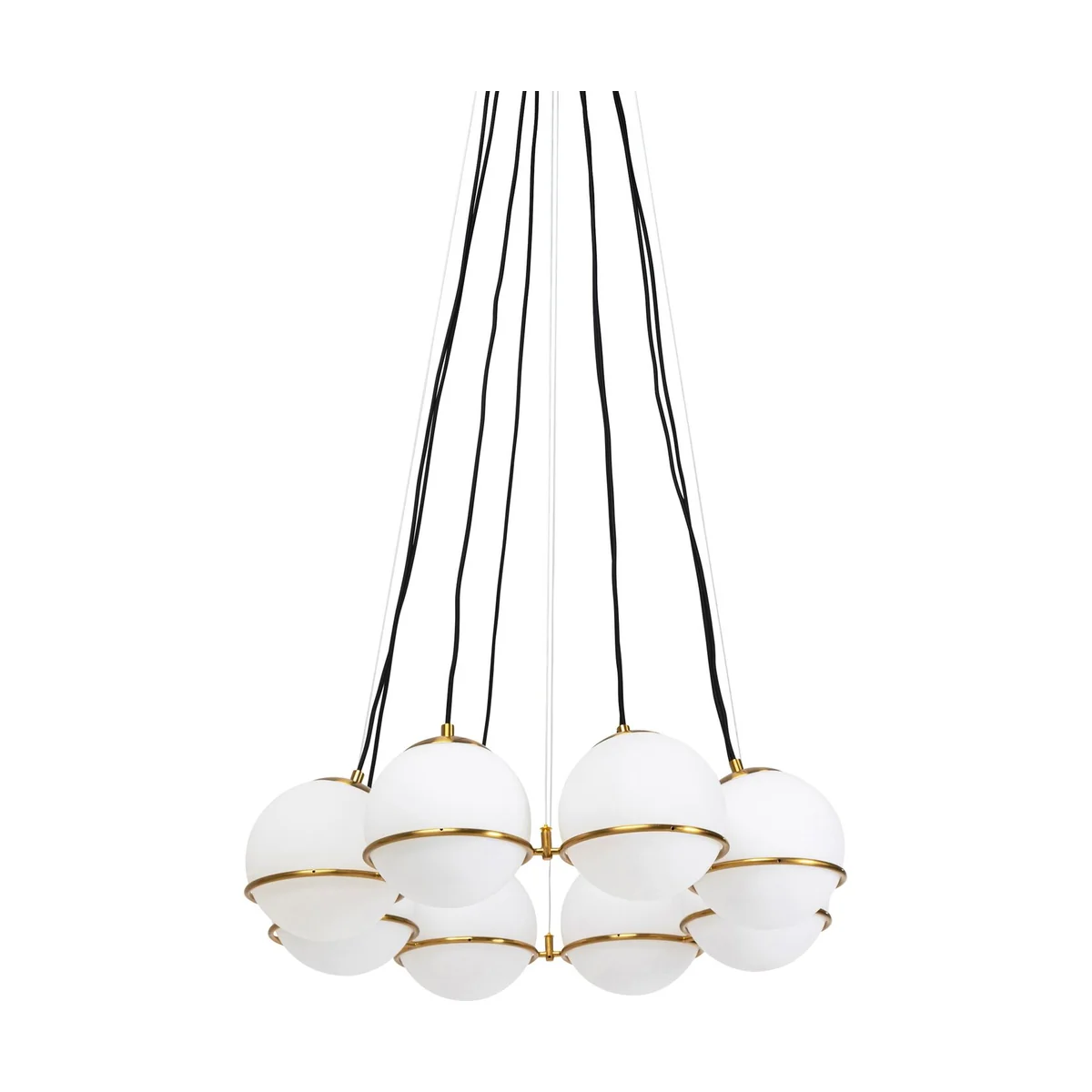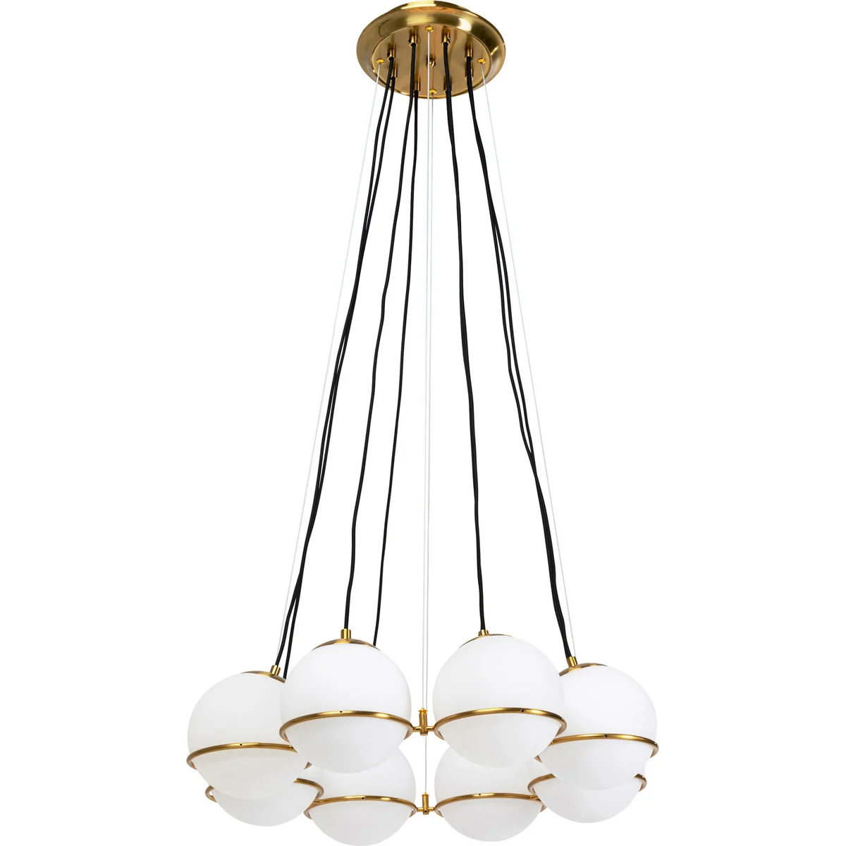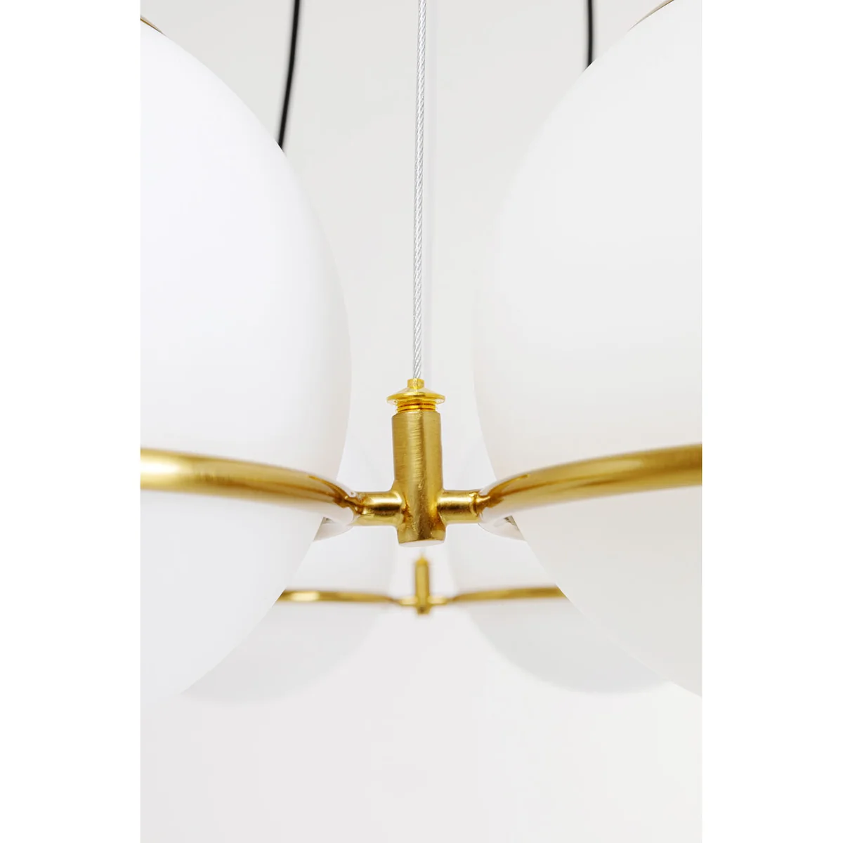 - A luxurious eight-bulb pendant lamp for the dining room, hallway or living room - A classically elegant combination of white glass and gold - The canopy and appliqués are made of steel with a fine brass coating - Practical for any area of the home: height adjustable from 90 to 130 cm - Simple, stylish, high-quality - this is how to upgrade your home