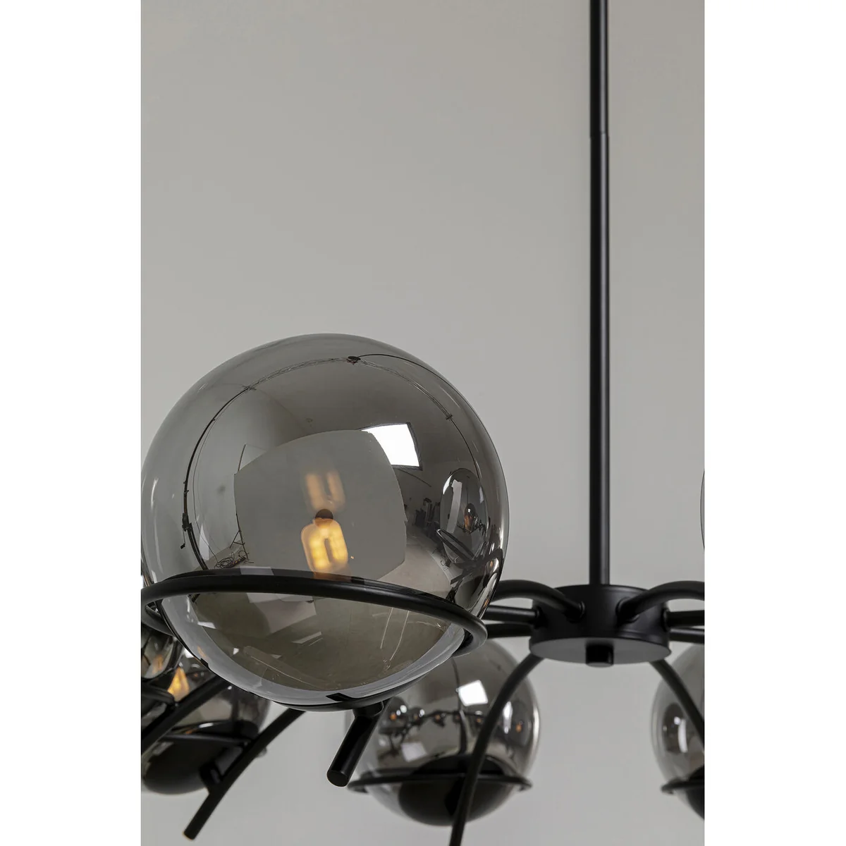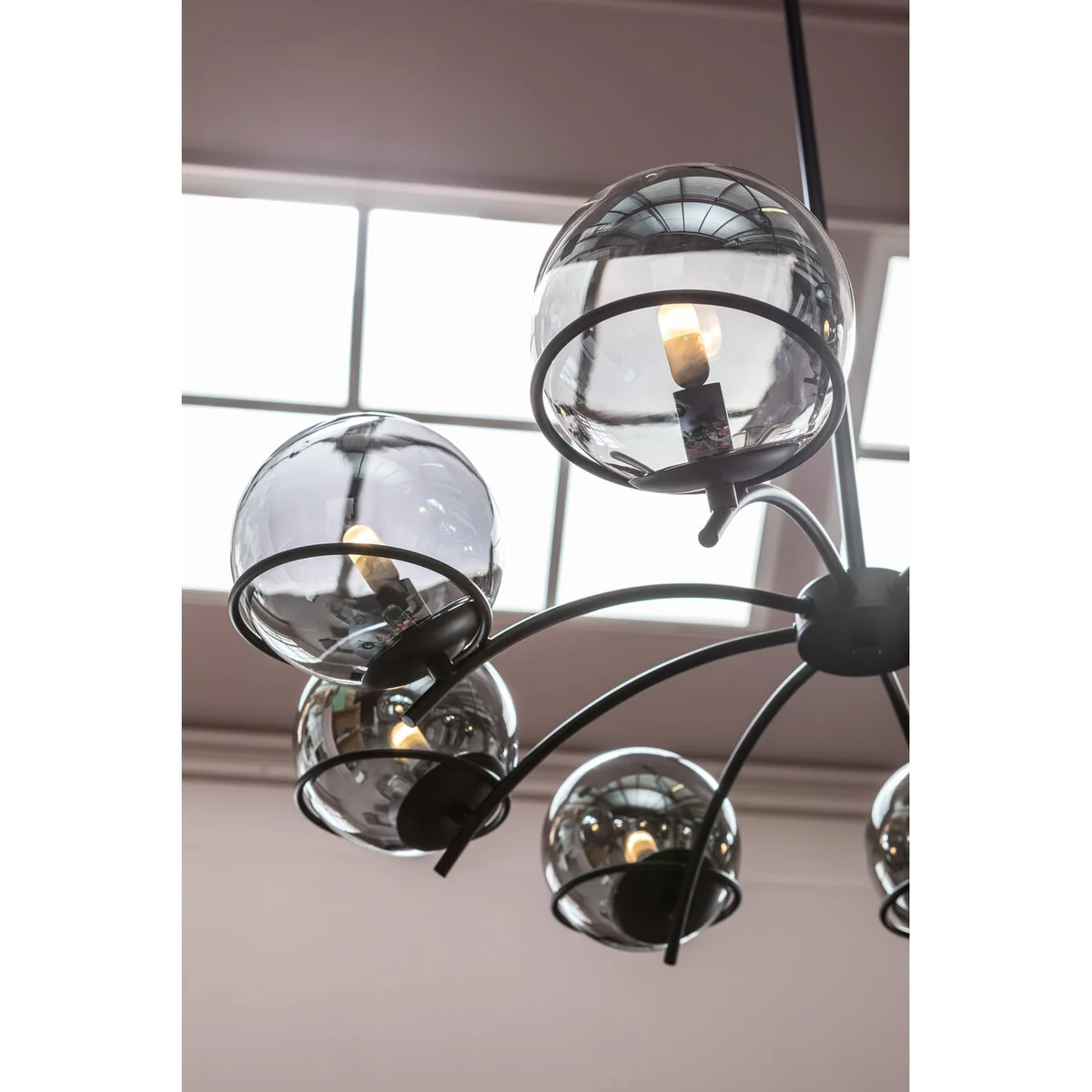 - Stylish chandelier in a contemporary, modern version - Height-adjustable from 50 to 167 centimetres thanks to the five-part suspension - Versatile in use as a room light mounted near the ceiling or hung low above the dining table - Simple in form, refined in effect thanks to the shimmering silver coloured glass of the lampshades - A pendant lamp for indirect, warm lighting of any room