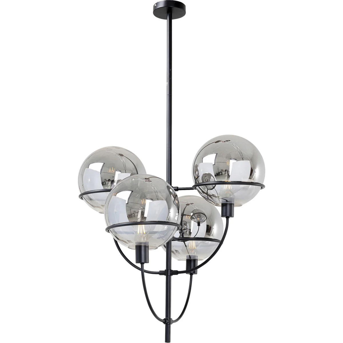 - An elegant pendant lamp in black, with four lampshades made of glass and coated with a subtle shimmer - A design statement in the hallway, bedroom and living room. Or as the crowning glory above the dining table - The spherical lamp has a high-quality finish, with a frame made of lacquered steel - Beautiful pendant lamps create a homely atmosphere and put your furnishings in the right light - A multi-bulb lamp for every style of furnishing: in a cool loft style as well as an elegant Art Deco highlight