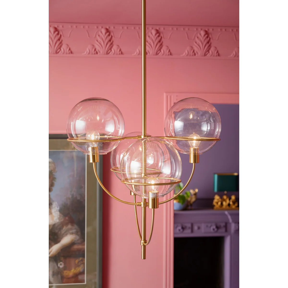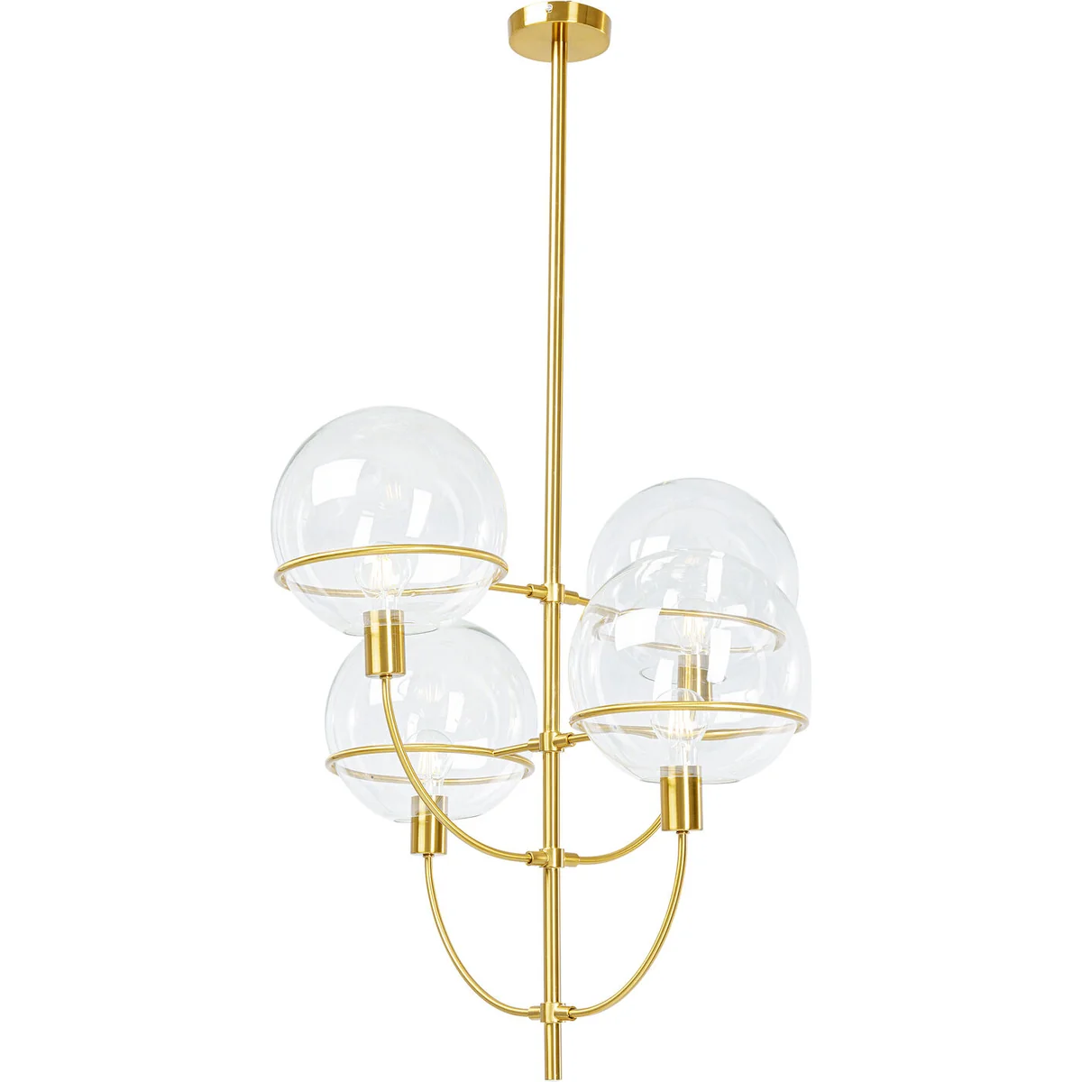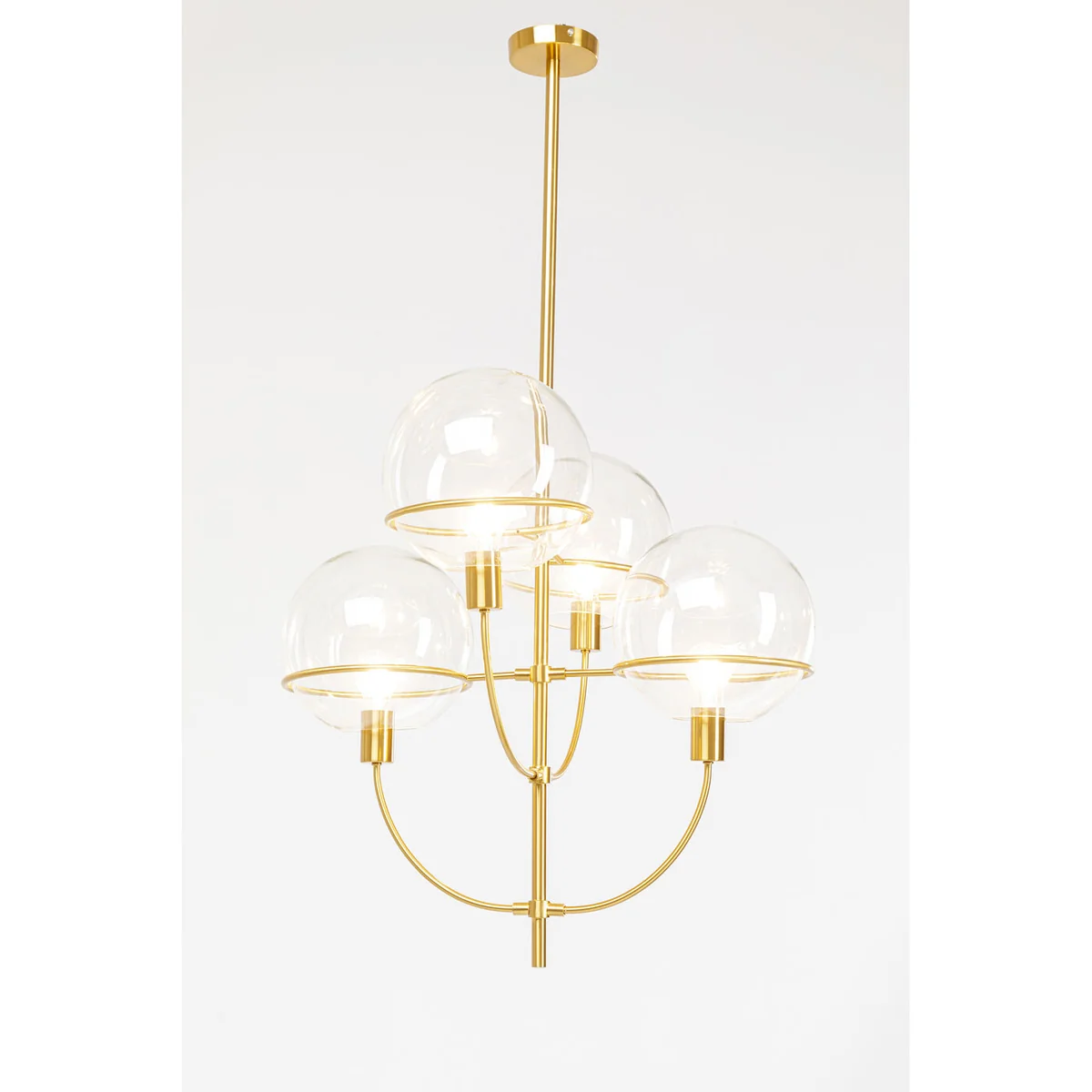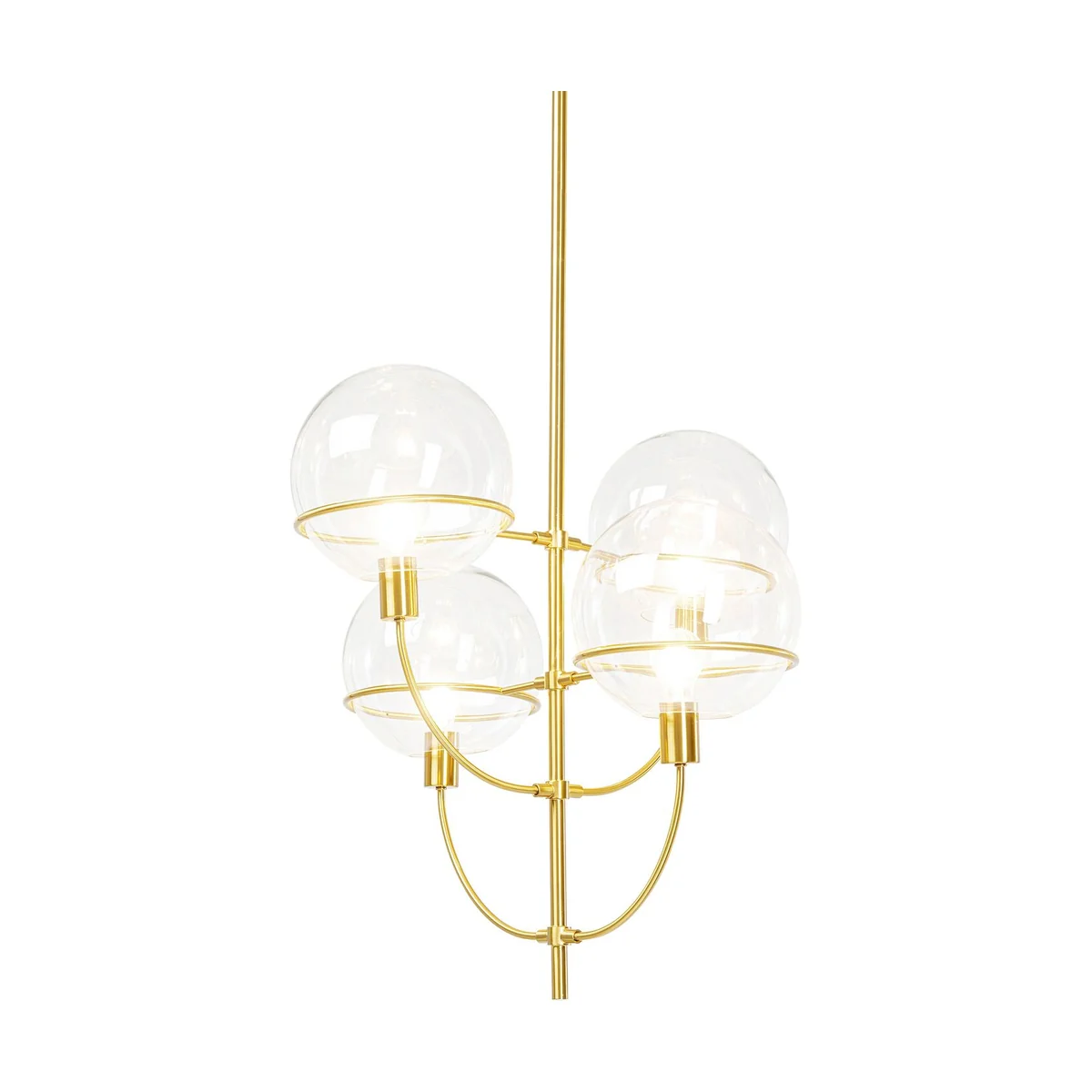 - Elegant pendant lamp in brass, with four lampshades in a spherical shape made of clear glass - A design statement in the hallway, bedroom and living room. Or as a crowning glory above the dining table - The spherical lamp has a high-quality finish and a frame made of steel with brass coating - Beautiful pendant lamps create a home-like atmosphere and put your furnishings in the right light - A multi-flame luminaire for every style of furnishing: in the cool loft style as well as an elegant Art Deco highlight