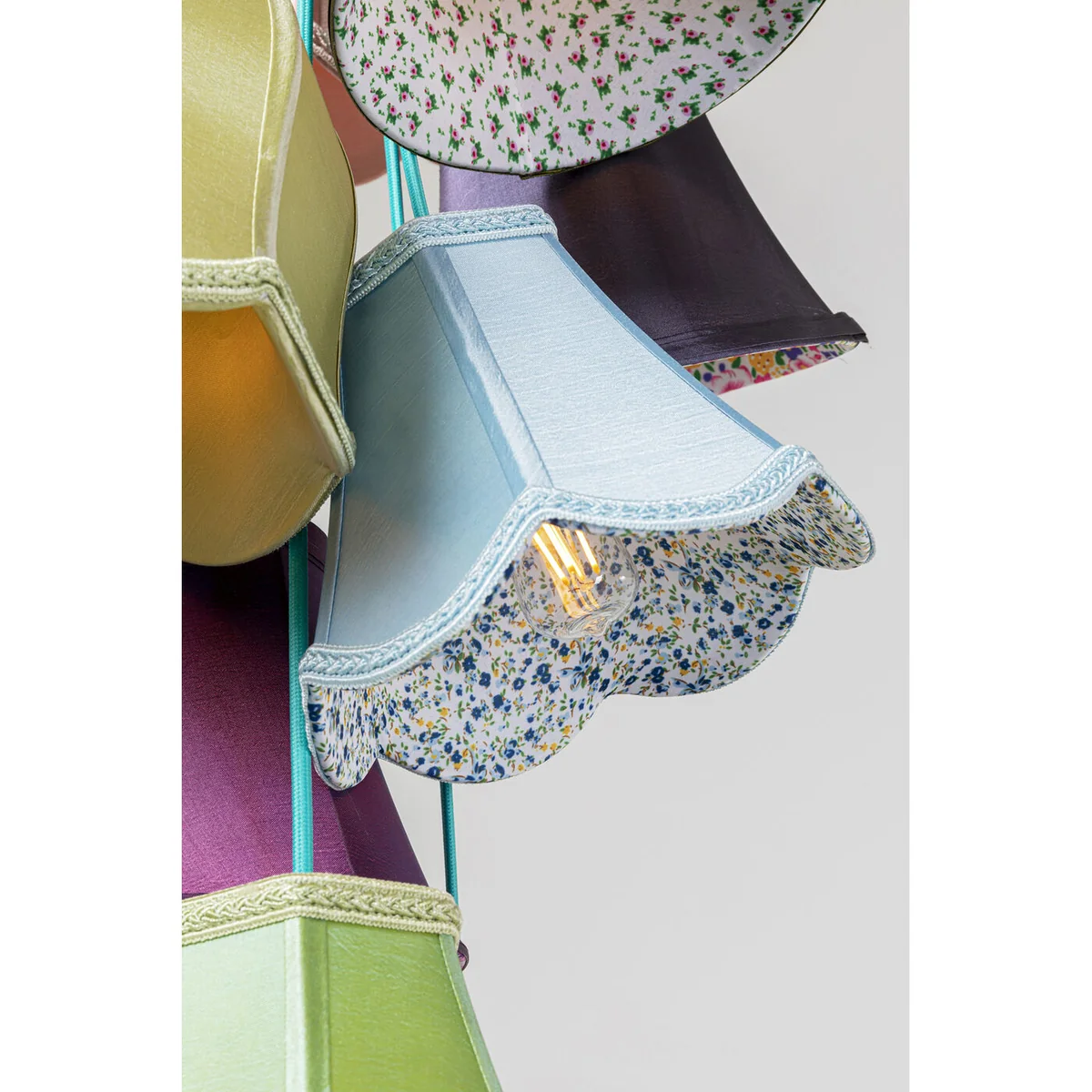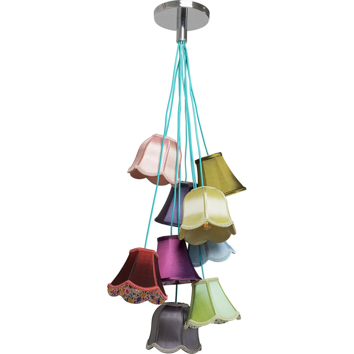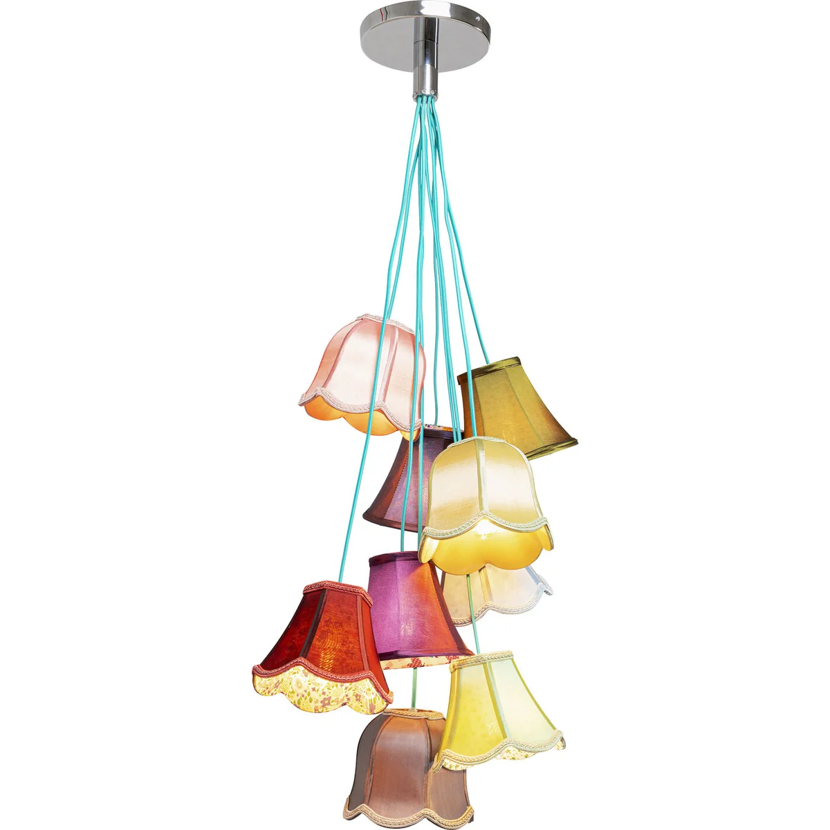 Illuminate your space with a pop of color with the Saloon Flowers 9 Pendant Lamp in multicolor artificial silk. This pendant lamp is a unique blend of style and functionality.