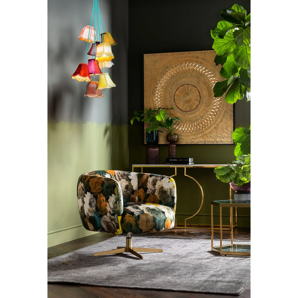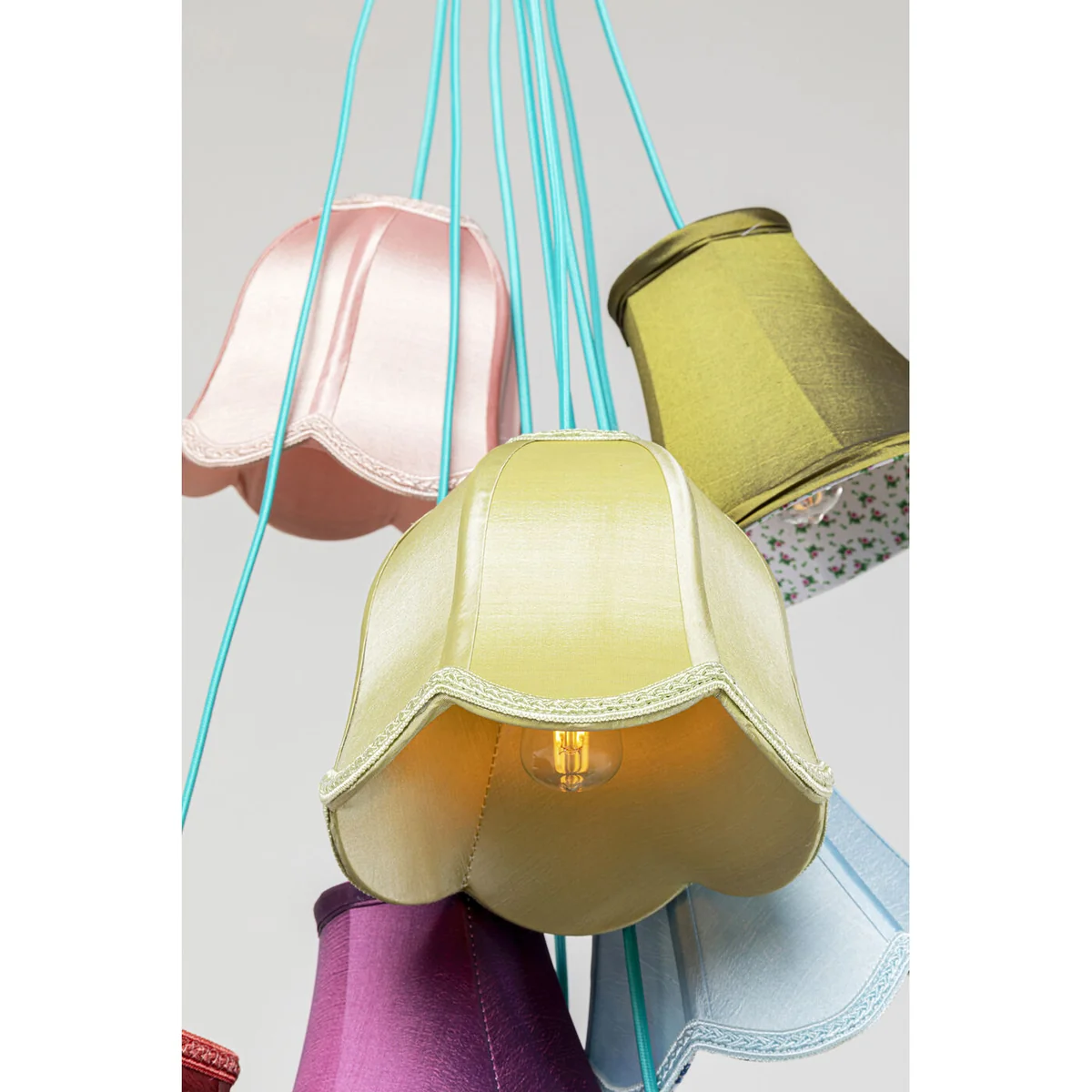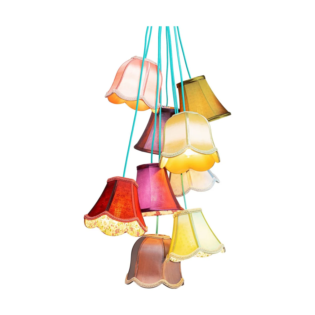 Illuminate your space with a pop of color with the Saloon Flowers 9 Pendant Lamp in multicolor artificial silk. This pendant lamp is a unique blend of style and functionality.