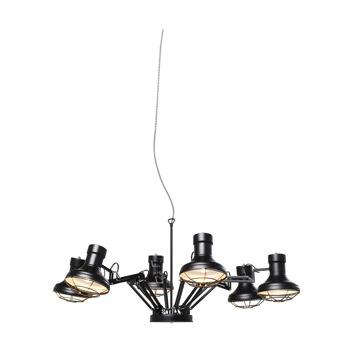Introducing the Spider Multi Pendant Lamp in black painted steel, a unique lighting fixture for modern homes. This 6-Lite pendant lamp is a stunning addition to any room.