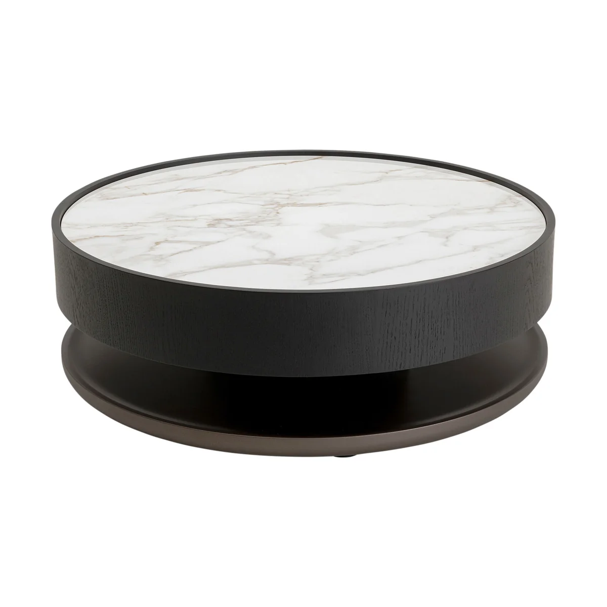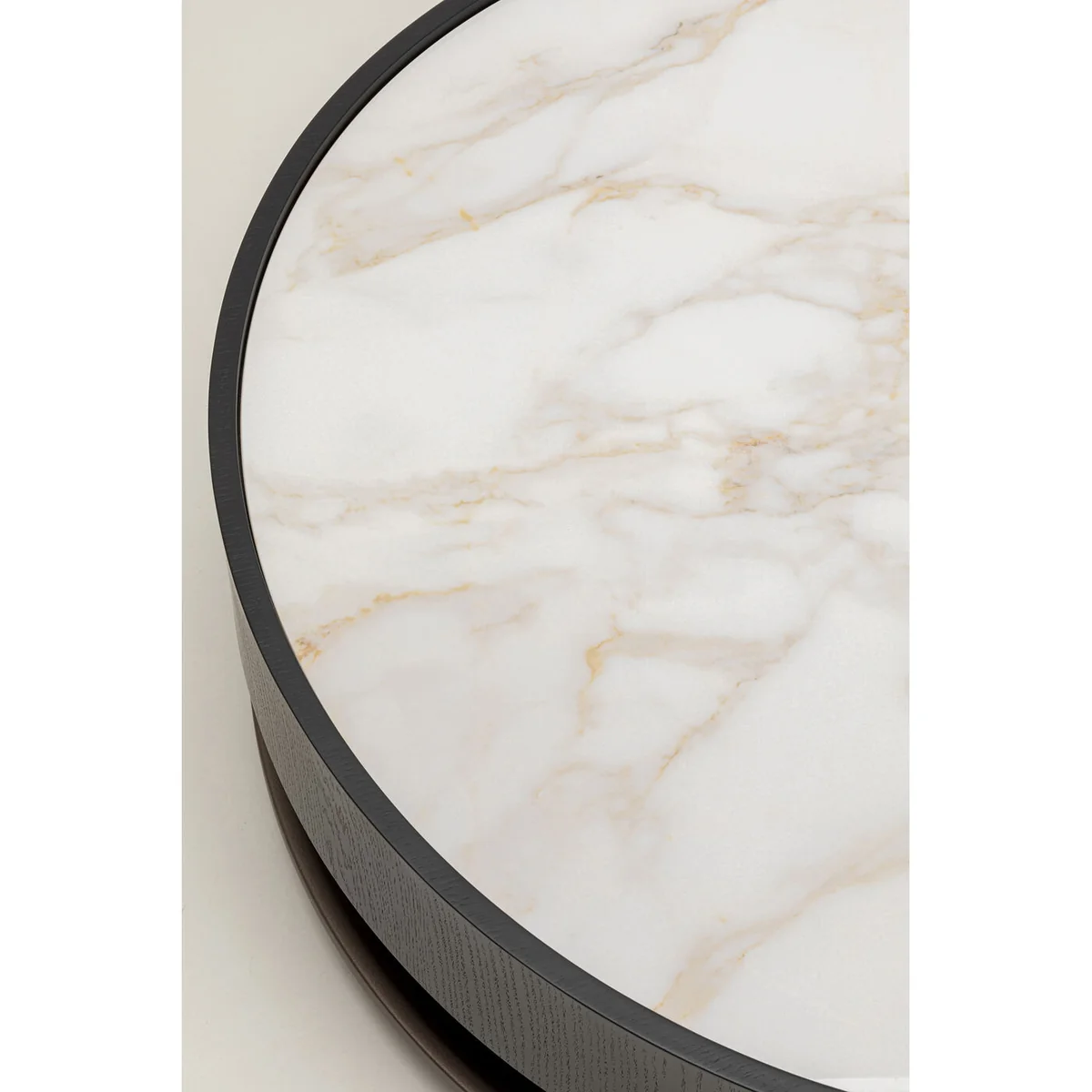 • Round coffee table in black and white, 32 x 93 x 93 cm (H/W/D) • The light-coloured ceramic table top in cream and white provides a contrast to the solid body with its wood grain • The table top rests on a frame made of black lacquered oak wood • The minimalist, elegant design harmonises perfectly with modern interiors • Supplied fully assembled, maximum weight capacity 50 kg