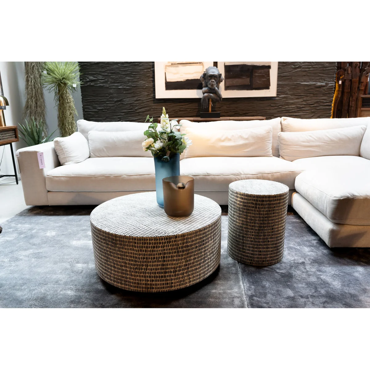 Not only does this table add a touch of art deco elegance to your living space, it also serves as a practical coffee table. The handcrafted details and unique design make it a perfect addition to any contemporary home, especially when paired with clean sofas, fluffy rugs or gold-colored accessories.
