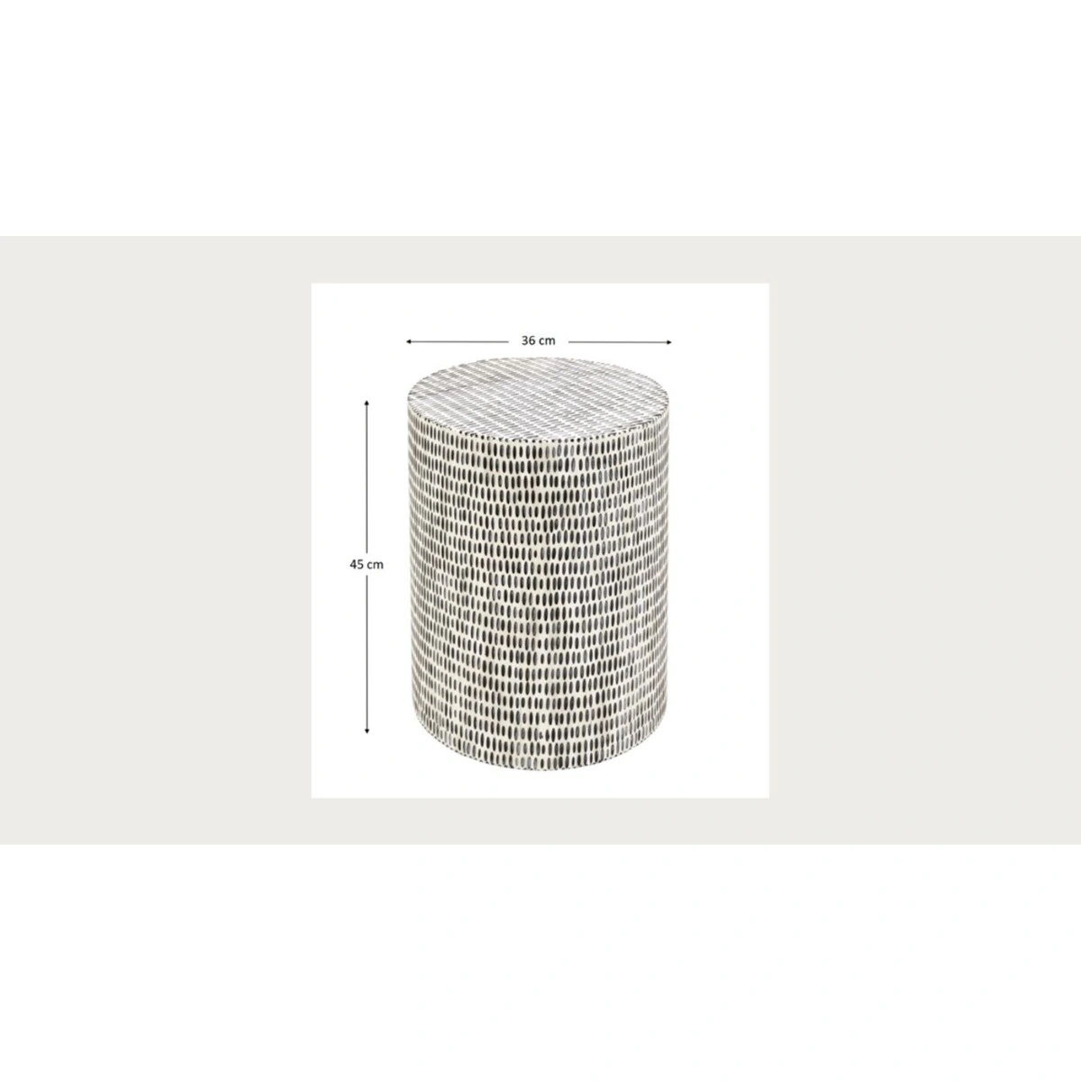Key features of this 45 x 36 x 36 cm table include a generous tabletop offering versatile storage for drinks, stylish decor, or other cherished items. The fine inlay patterns in white and black turn every table into an exclusive designer piece. It's perfect as a stylish eye-catcher next to the sofa, armchair, in the hallway, or as a bedside table.