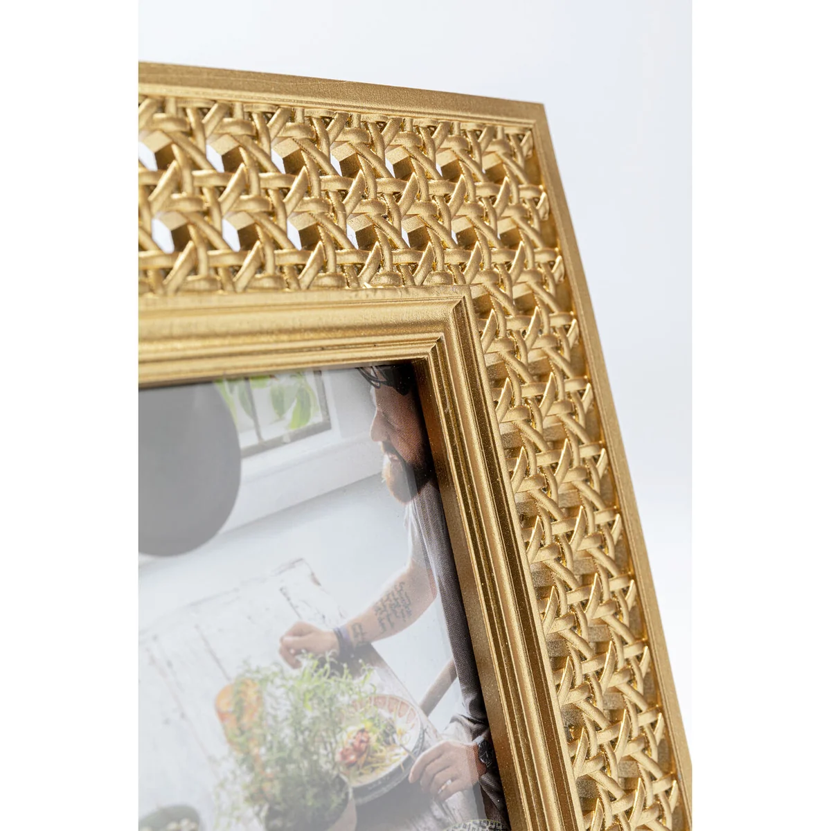 Classic lattice work in subtle gold and white adds an element of elegance to this frame. Perfect to showcase family moments.