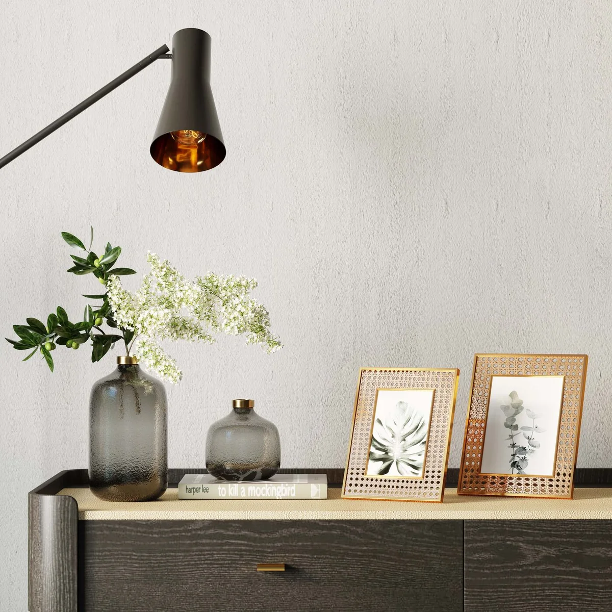 An interplay of texture, shine and shape: This picture frame sets the scene for your favorite motifs with an artistic twist. The eye-catching honeycomb-look surface gives photographs a modern frame and adds visual interest to any sideboard or wall shelf. In shiny gold, it brings a stylish sparkle to the interior - particularly attractive in combination with monochrome prints or black and white photos. Ideal as a highlight in a mix of simple frames or as a soloist on the bedside table. A decorative piece that puts memories in the limelight and gives every room that certain something.
