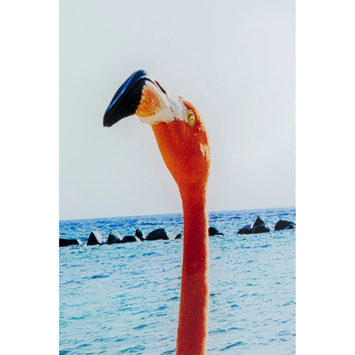 The grace of pink flamingoes walking on the beach and the calm waters entice a holiday feel. A picture perfect postcard for all future travel goals.