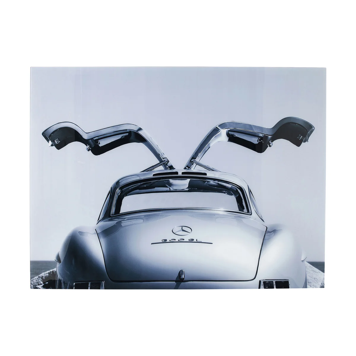 Immerse yourself in the nostalgia of bygone eras with the Oldtimer Picture Glass Art in Black and Silver. This large-sized piece commands attention, making it a focal point in any room.