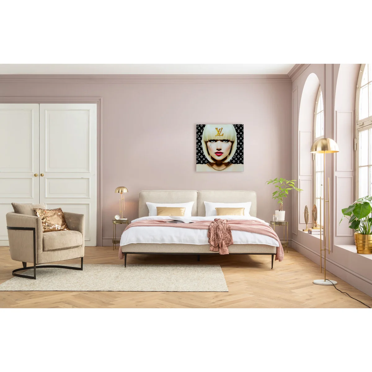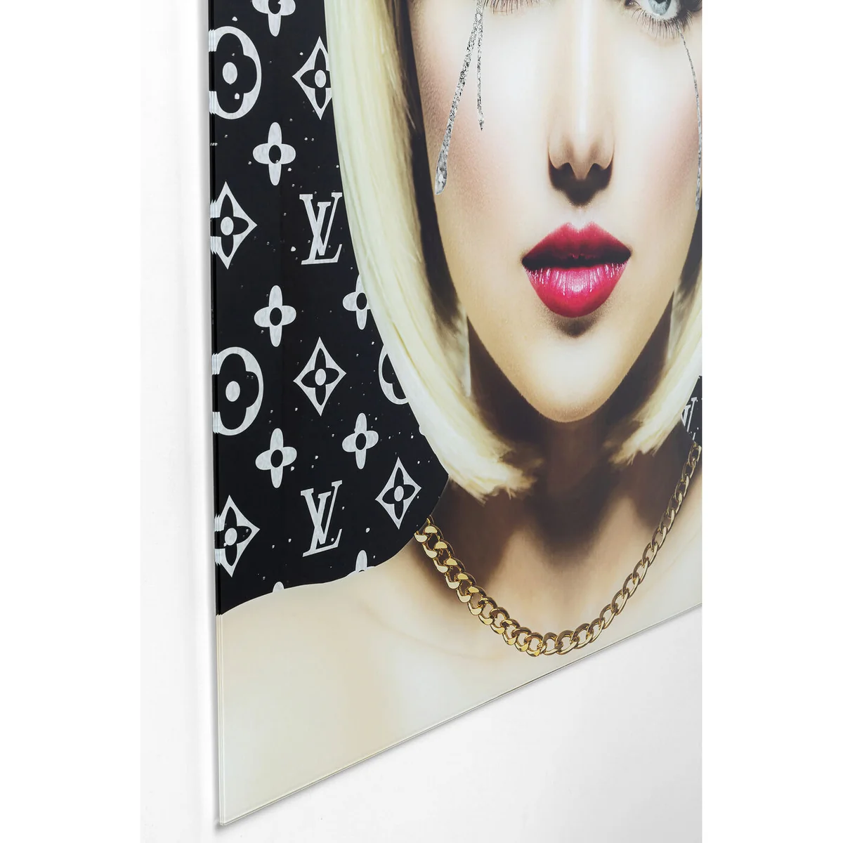 - Square photo art with a blond beauty stylishly mounted behind glass ,A clear style message for the wall: this is the home of a fashionista with a taste for luxury brands - The frameless print is an ideal match for other photographs and pictures on the wall, whether black and white or in colour - A gift idea for your best friends when they move to a new flat - or simply as a token of friendship! - Glass pictures for the wall immediately add a cool and modern touch to the room - there are lots more designs in our shop!