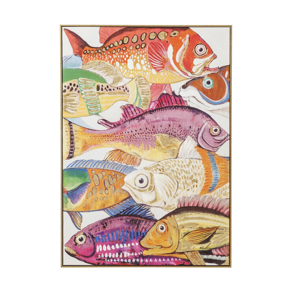 Add an artistic touch to your interior with our Multicolor Fish Meeting One Touched Canvas Picture, perfect for any room. The vibrant colors and unique design will surely catch everyone's attention.