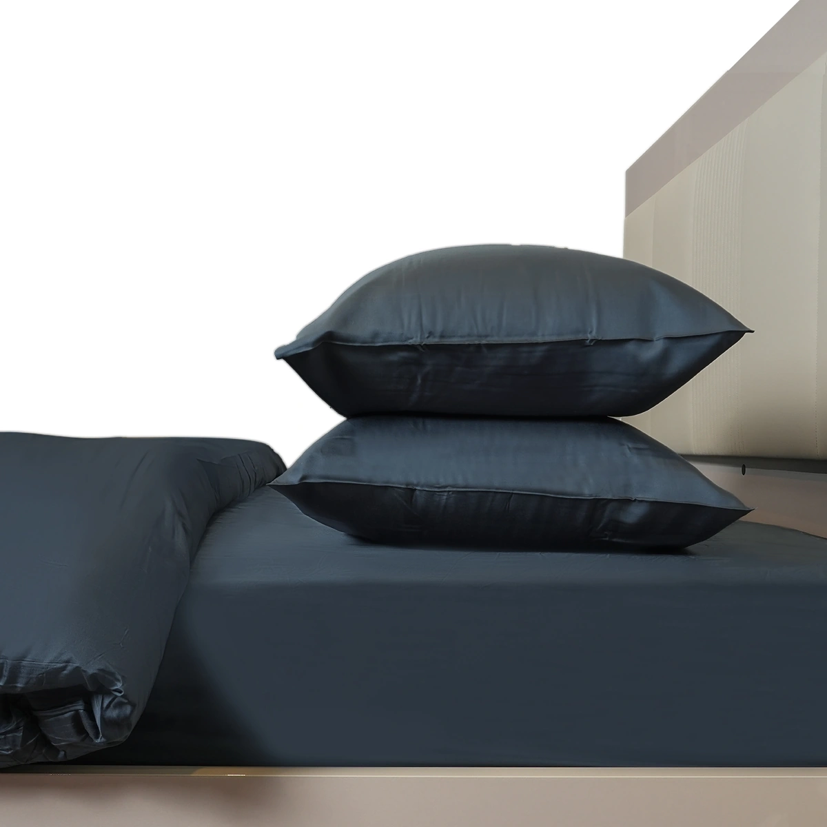 Elevate your bedroom aesthetics with the Standard Set Pillowcases in Teal Bamboo. Crafted from 100% organic and sustainably sourced bamboo, these pillowcases promise a serene sleeping experience.