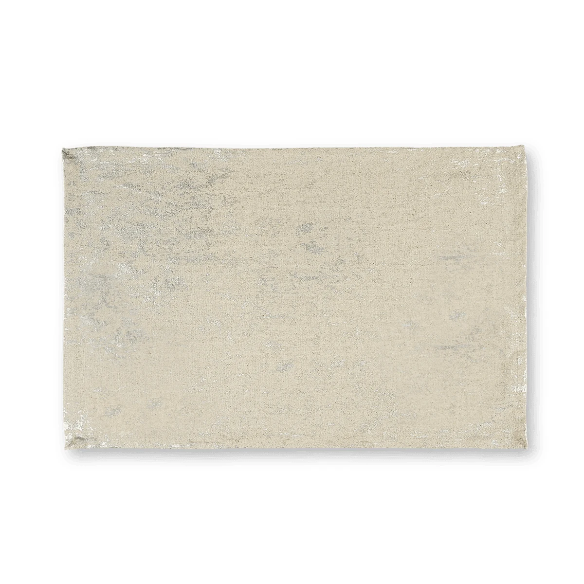 This placemat measures 33 cm in length and 50 cm in diameter. Crafted from high-quality cotton flex material, it features an exquisite silver color that adds a luxurious feel to any table setting. Its versatile design fits well with a variety of home decor styles.