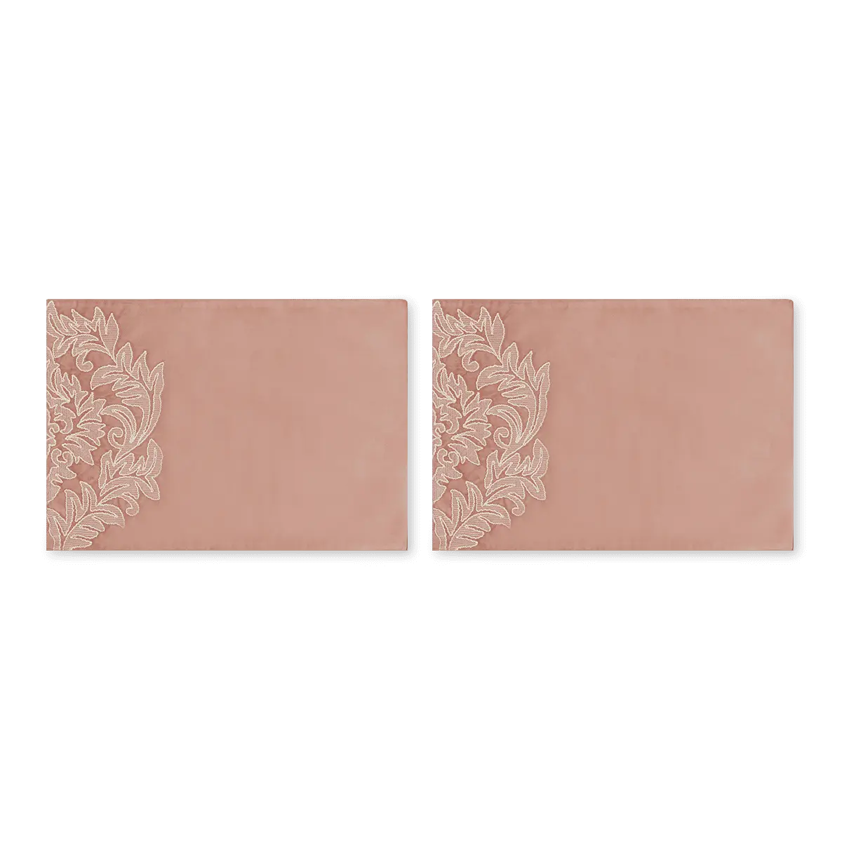 Blush Pink Velvet Embroidery Motif Placemat Set - Table Linen (33cm x 48cm)