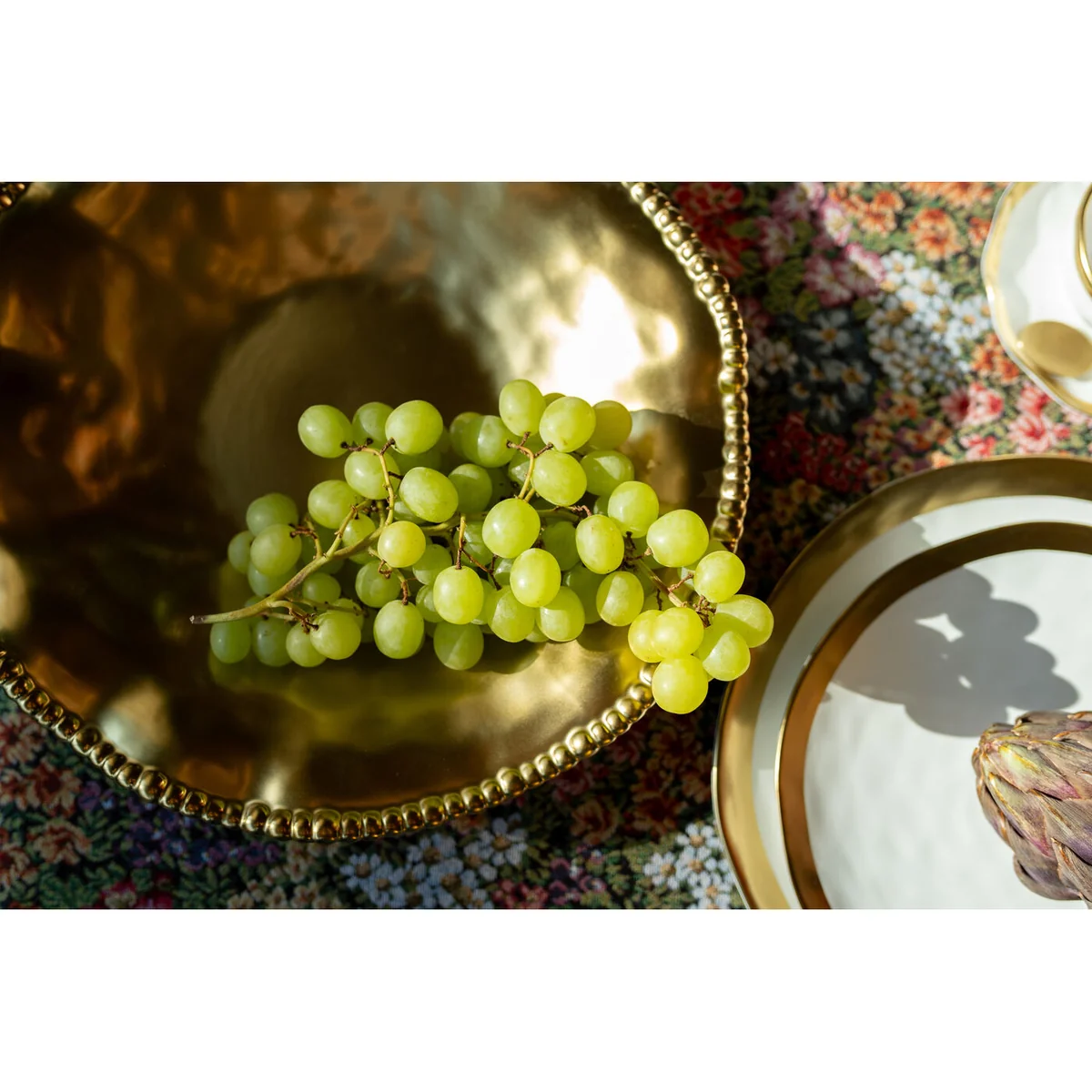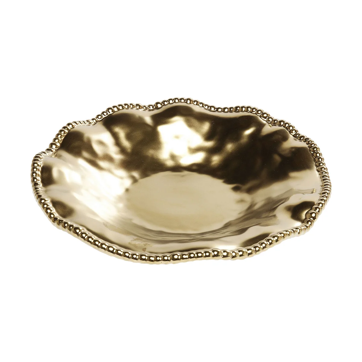 Introducing the Golden Porcelain Glazed Bell Plate, a perfect piece for your dining decor. This Ø36cm decorative plate, made of high-quality porcelain and glazed to perfection, exhibits an exquisite golden finish.