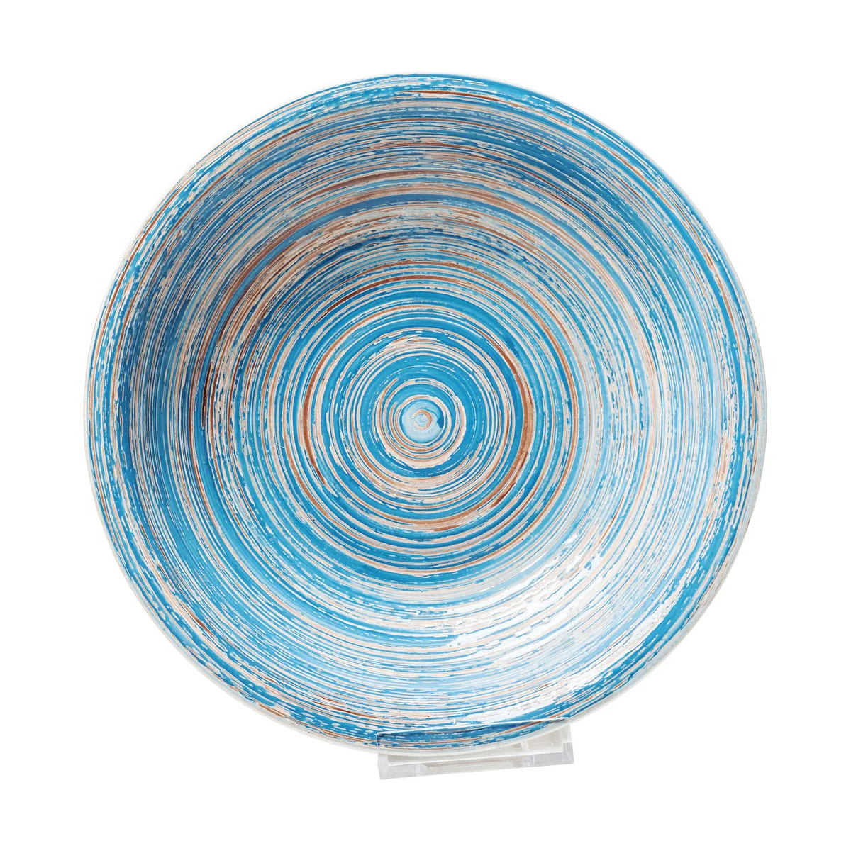 Measuring 21cm in diameter, this deep plate is crafted from durable stoneware and finished in a stunning blue color. Its unique swirl design adds a touch of artistic elegance to your table setting.