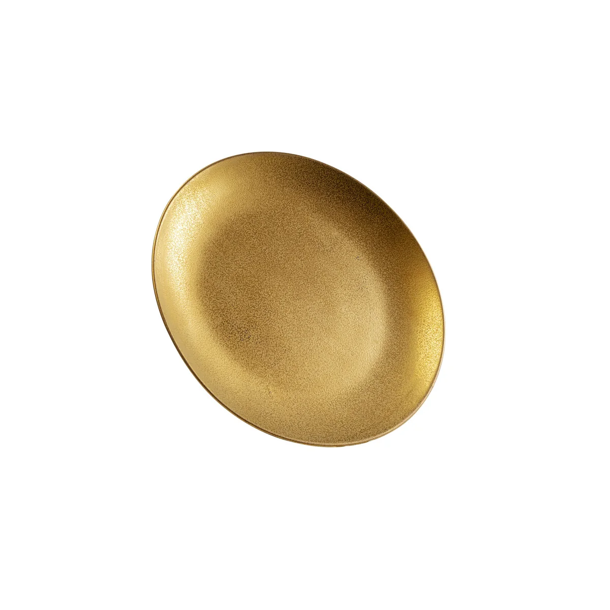 A large plate in matt gold gives the table setting a timelessly elegant touch. Its size makes it possible to present opulent dishes in an appealing way. The matt gold comes into its own wonderfully by candlelight and under a dining table lamp. Diva conveys a refined atmosphere and turns every dinner into a festive occasion. This plate becomes an attention-getter for your guests, combining luxury and style and turning the culinary experience into something special. Due to the special coating technique and the handmade production, the plate is not suitable for the dishwasher or microwave.