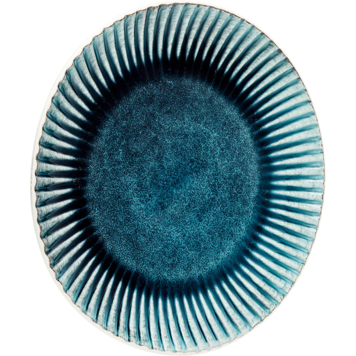 With a diameter of 29cm, this plate is constructed from high-quality stoneware glazed for a glossy finish. The unique rim design adds a touch of class, while the striking blue color can complement any table setting.