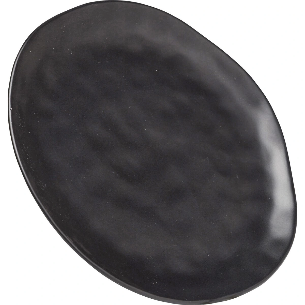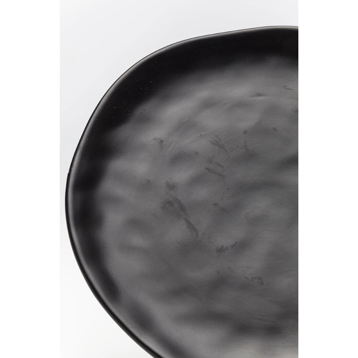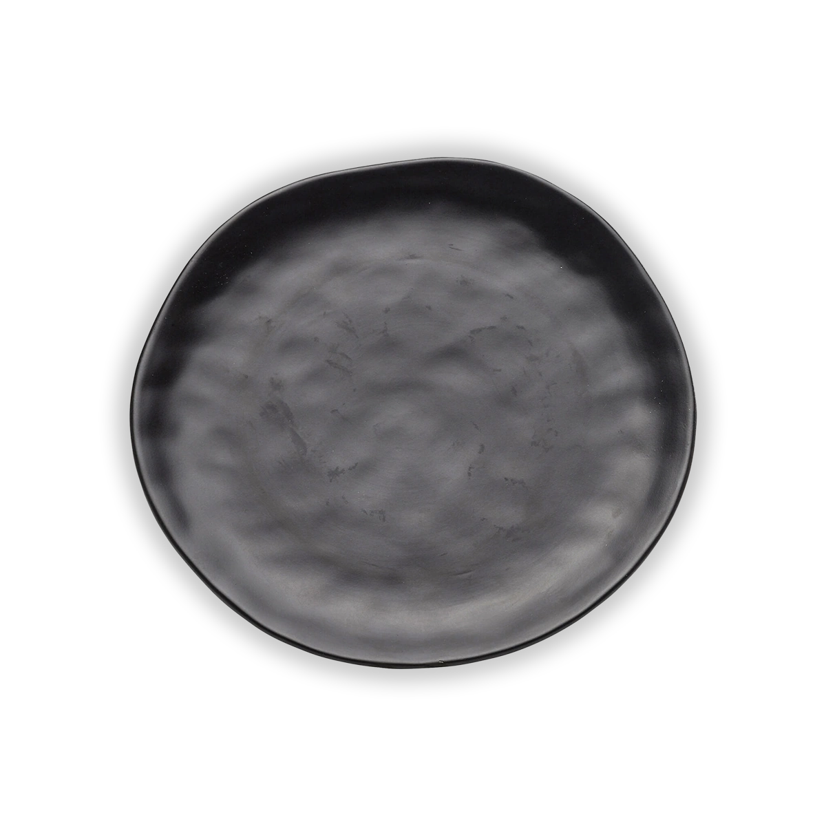 • Large, round dinner plate made of deep black stoneware - also an eye-catcher as an underplate with its hand-made look!