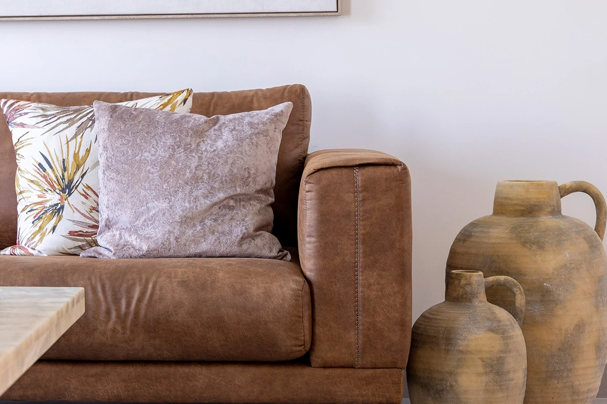 Perfect for compact living rooms or apartment spaces, this 2.5-seater design offers generous comfort without overwhelming the room. Its rich brown tone adds warmth and pairs easily with neutral, earthy, or contemporary décor. With supportive cushions and a refined silhouette, it’s ideal for everyday lounging and casual gatherings.
