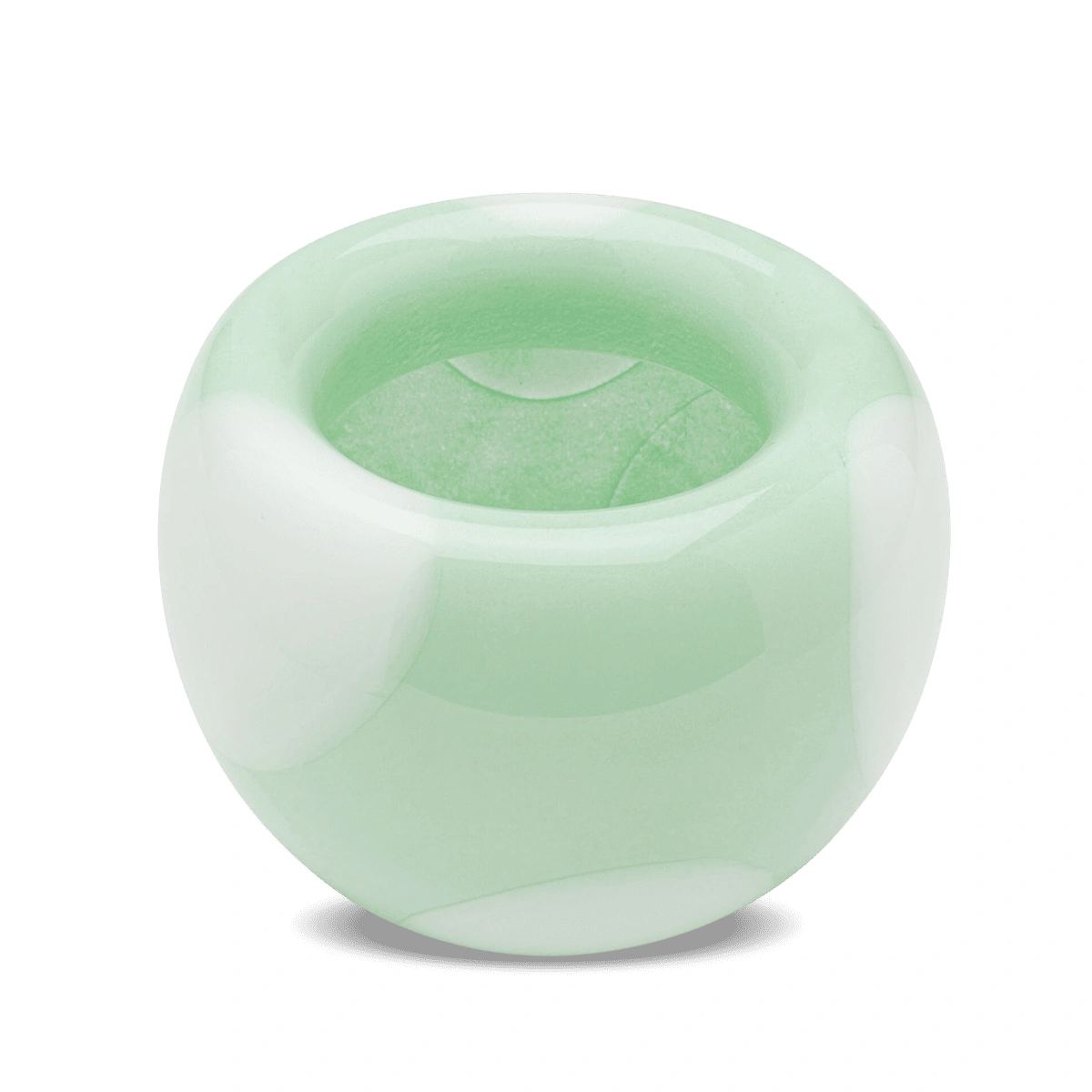 • In a refreshing pastel green with white accents and thanks to its rounded shape, the vase sets stylish accents