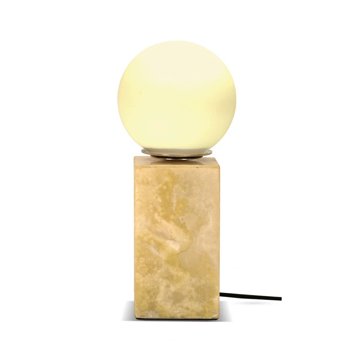 Experience the harmonious blend of nature and modernity with the Onyx Green Marble Qube Table Lamp. This sophisticated piece brings a serene ambiance to any space.