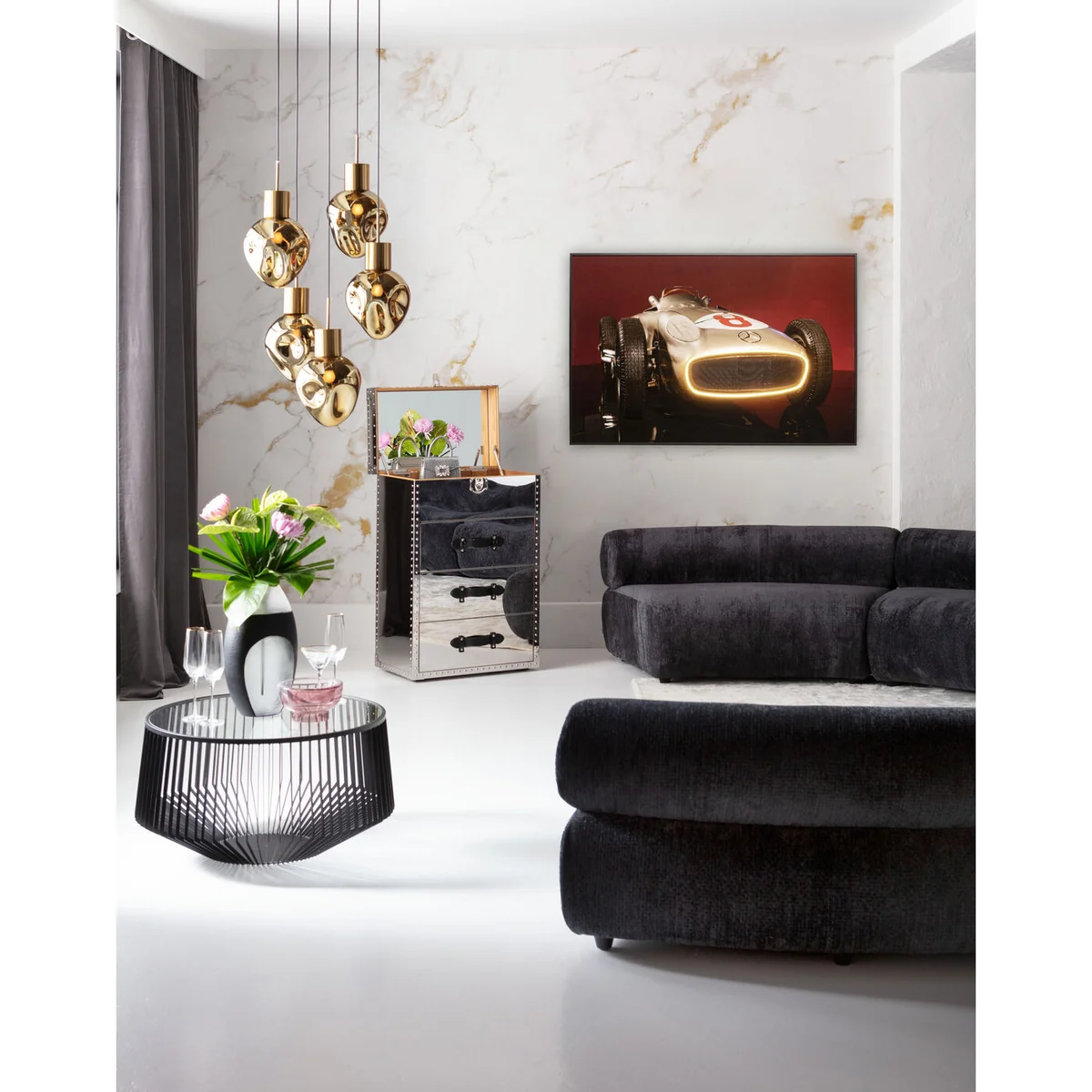 Vibrant energy for your wall: this LED picture brings urban chic motorsport flair directly into your living room, office or hobby room. The silver racing car seems to burst out of the picture with dynamic energy – supported by integrated lighting effects that spectacularly highlight the motif. As wall decoration, it creates atmosphere, highlights modern interior design concepts and adds the finishing touch to masculine interiors. Particularly effective in combination with industrial elements, metal accessories or clean lines. A real highlight for fans of speed, design and visual power.