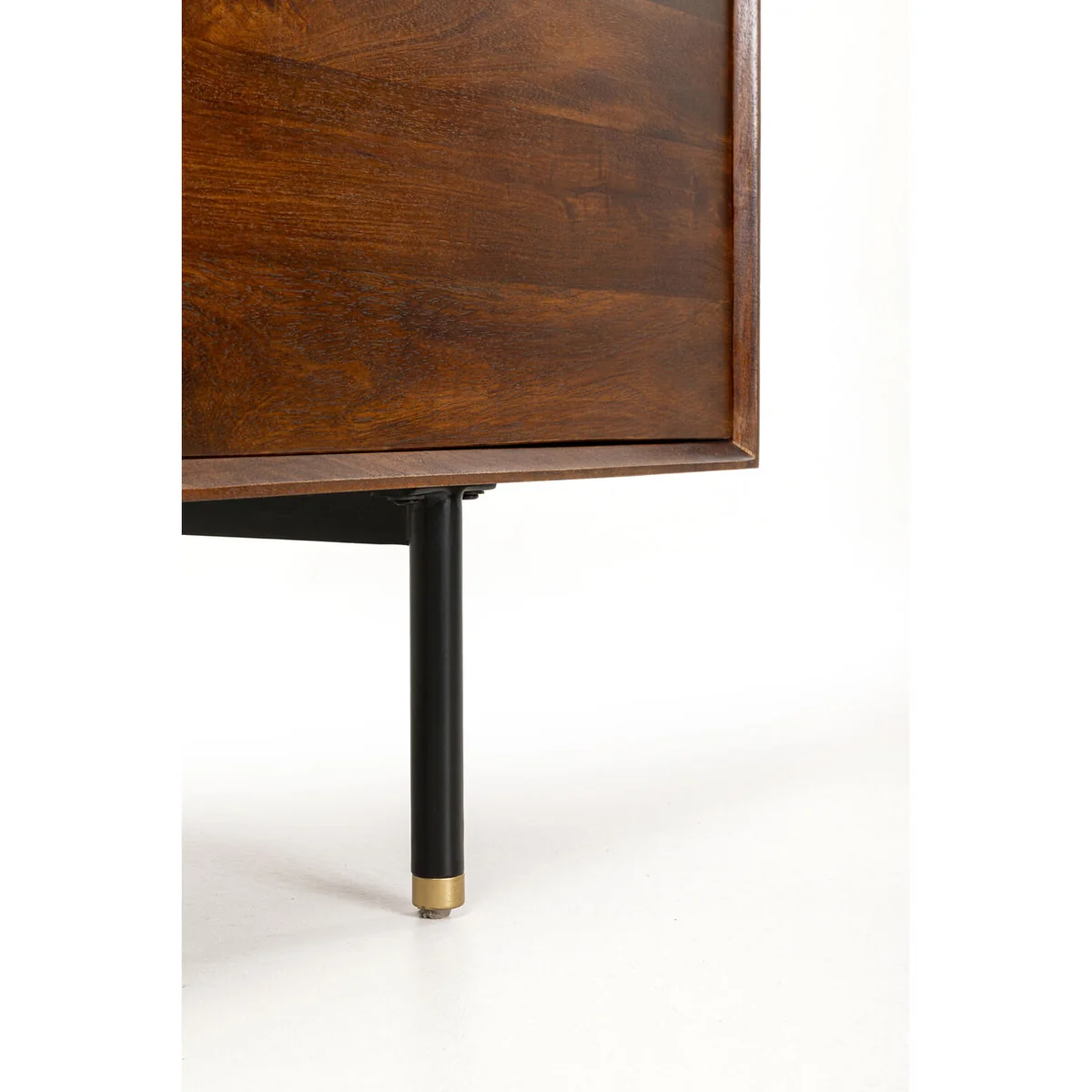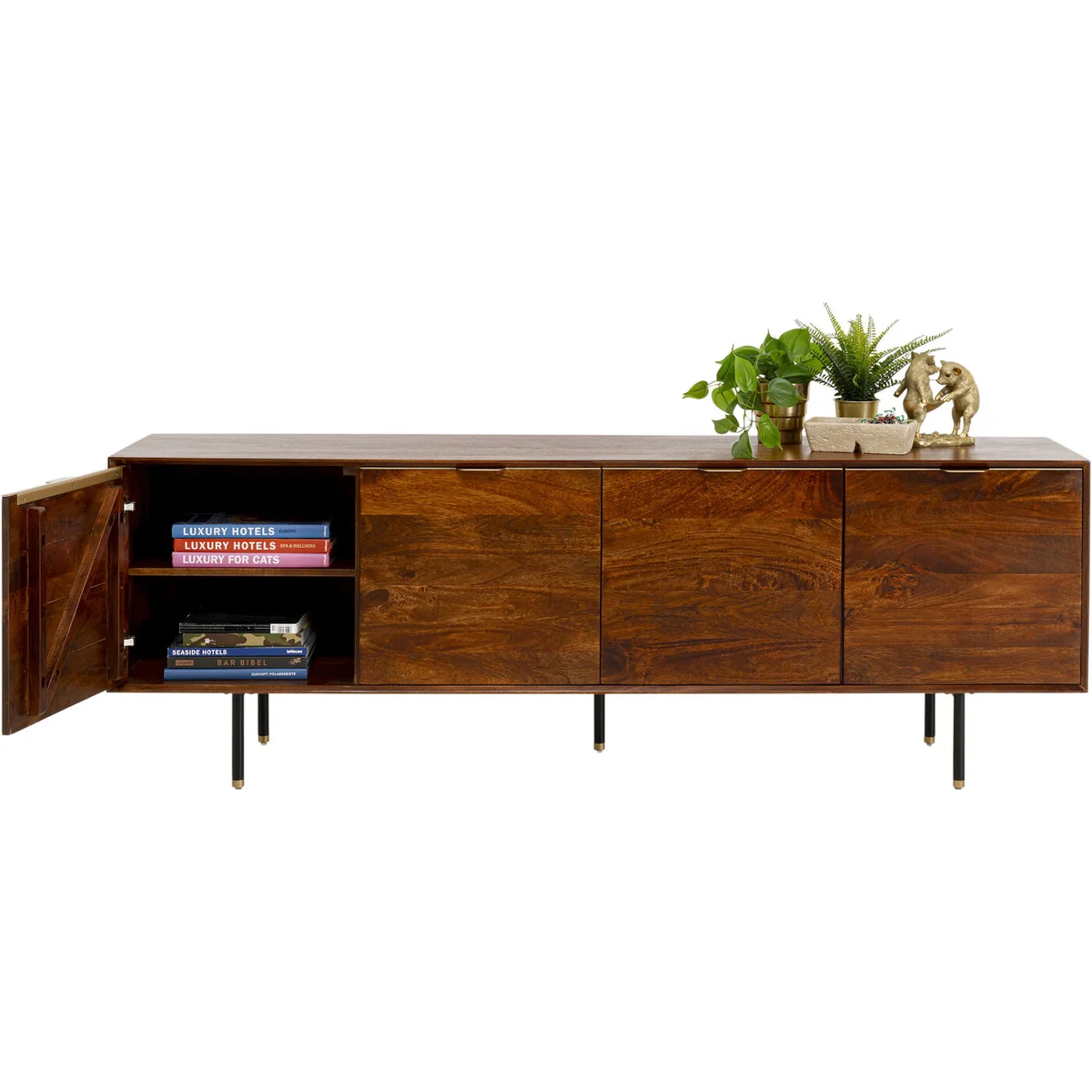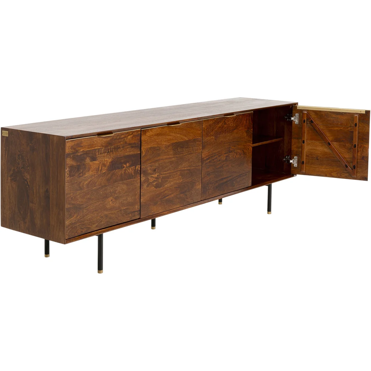 - Large sideboard with fronts and body in solid sheesham wood in the best Scandinavian design tradition - a modern classic with lots of storage space - Also suitable as a TV board thanks to the round openings in the back for cables - Exclusively designed for KARE by the well-known Danish furniture designer Morten Georgsen - Expressive: The strikingly grained sheesham wood is harder than oak, while its play of colours varies between golden yellow and reddish brown - Each item of furniture from the collection is a charming one-off piece, characterised by craftsmanship and the beautiful play of the lines and colours of the grain