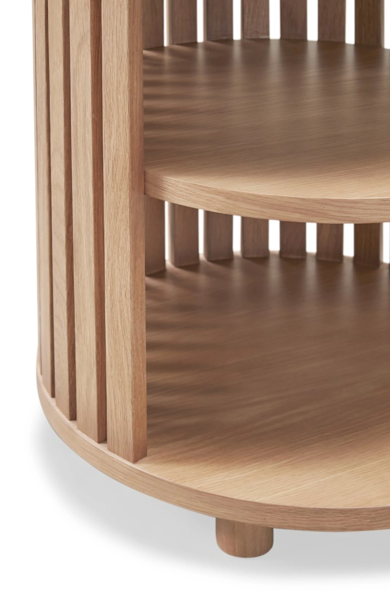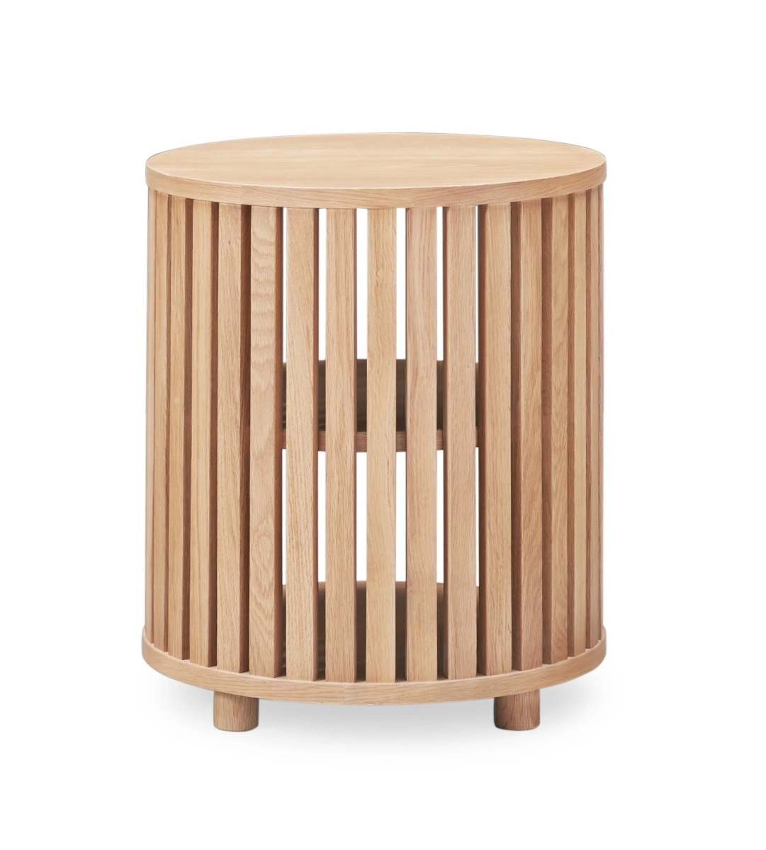 The benefits of the Recap Nightstand are numerous. Its small footprint makes it ideal for bedrooms of any size, while the quality oak construction ensures it will stand the test of time. The beige color effortlessly enhances the aesthetic of any room.