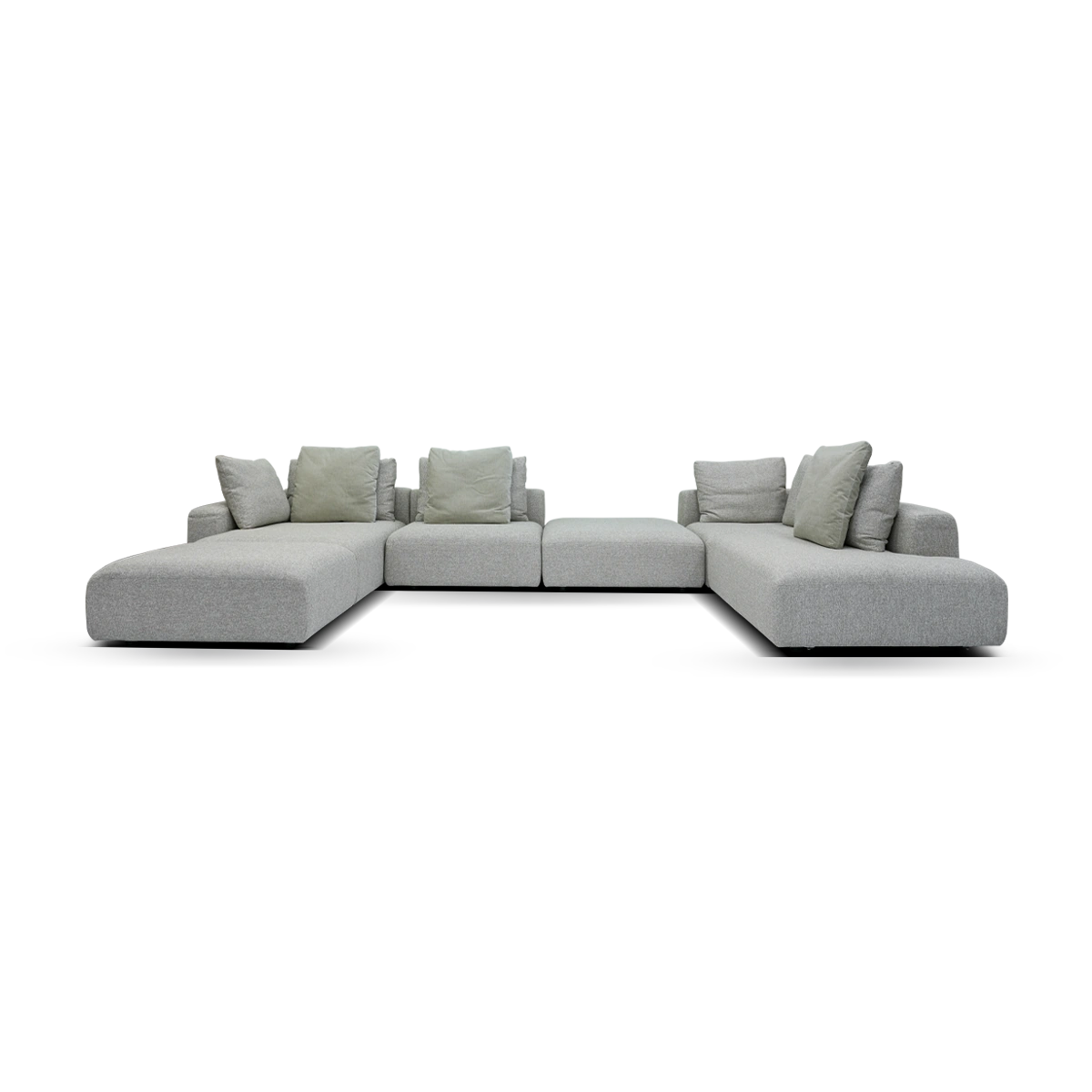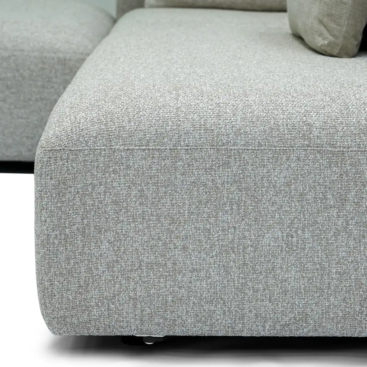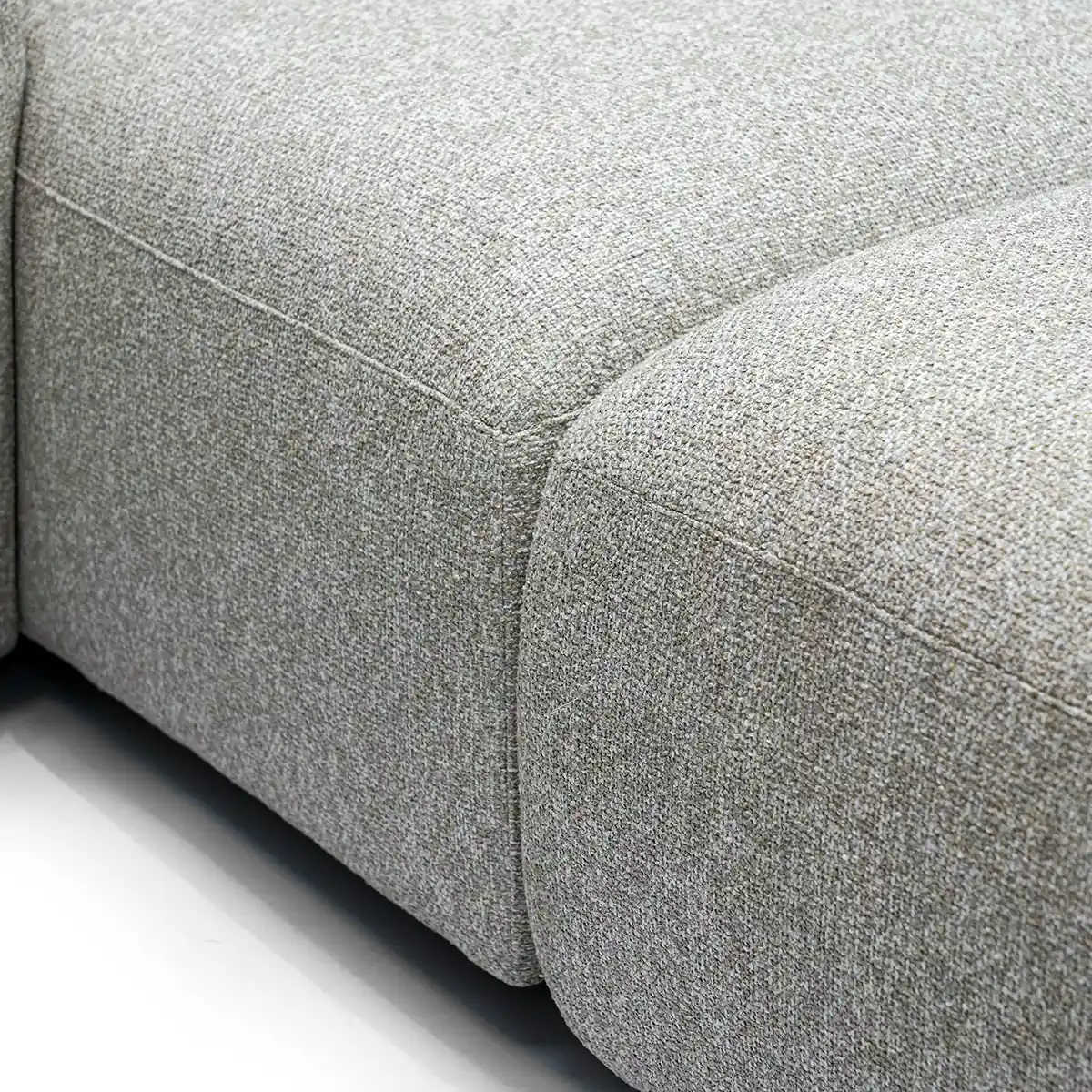 Crafted with a strong pine wood and plywood frame, the Reverso sofa promises long-lasting durability and steady support. The plush feather-filled cushions offer a soft, sink-in feel, while the textured fabric adds depth and character to the design. With its expansive L-shaped structure and plastic legs that provide lightweight stability, the sofa blends style, comfort, and functionality effortlessly.