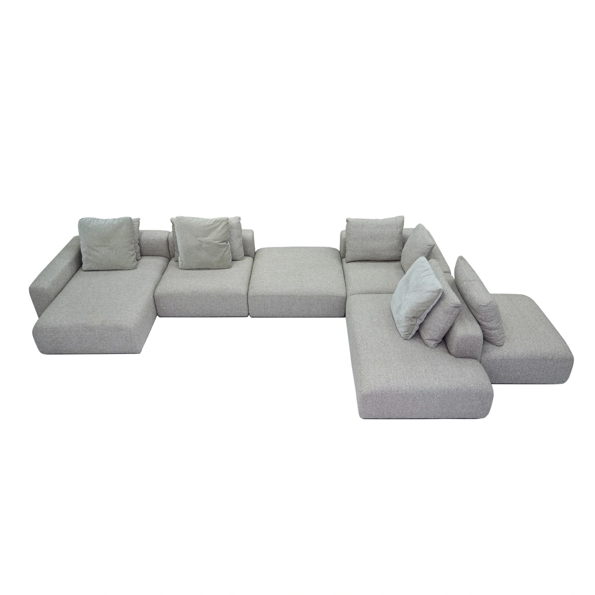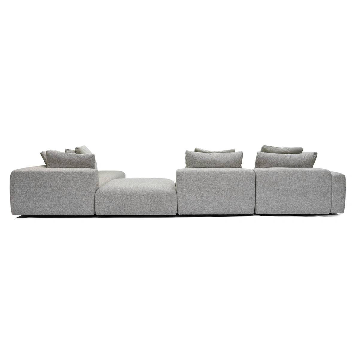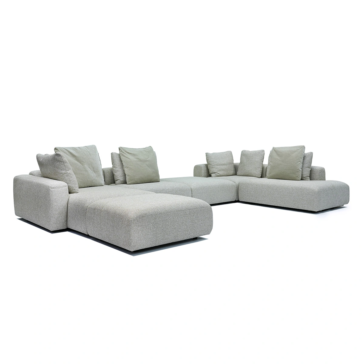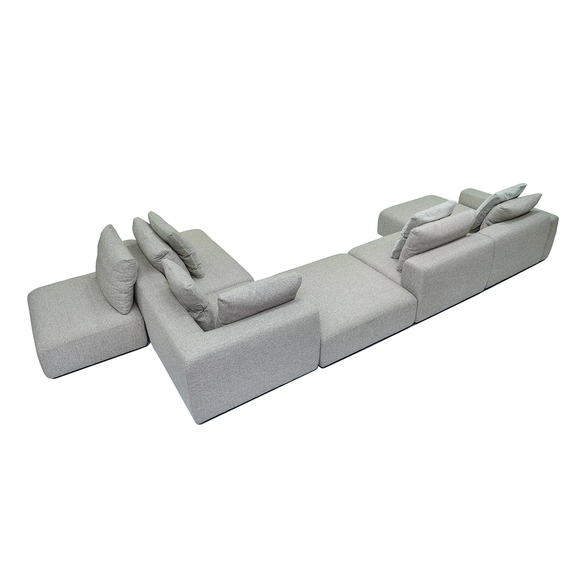 Crafted with a strong pine wood and plywood frame, the Reverso sofa promises long-lasting durability and steady support. The plush feather-filled cushions offer a soft, sink-in feel, while the textured fabric adds depth and character to the design. With its expansive L-shaped structure and plastic legs that provide lightweight stability, the sofa blends style, comfort, and functionality effortlessly.