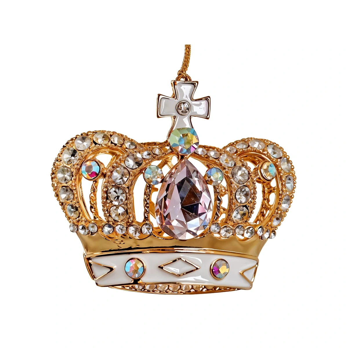 Small Gold Rhinestone Crown Ornament in Polyester and Glass