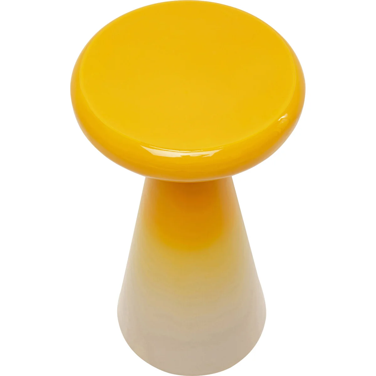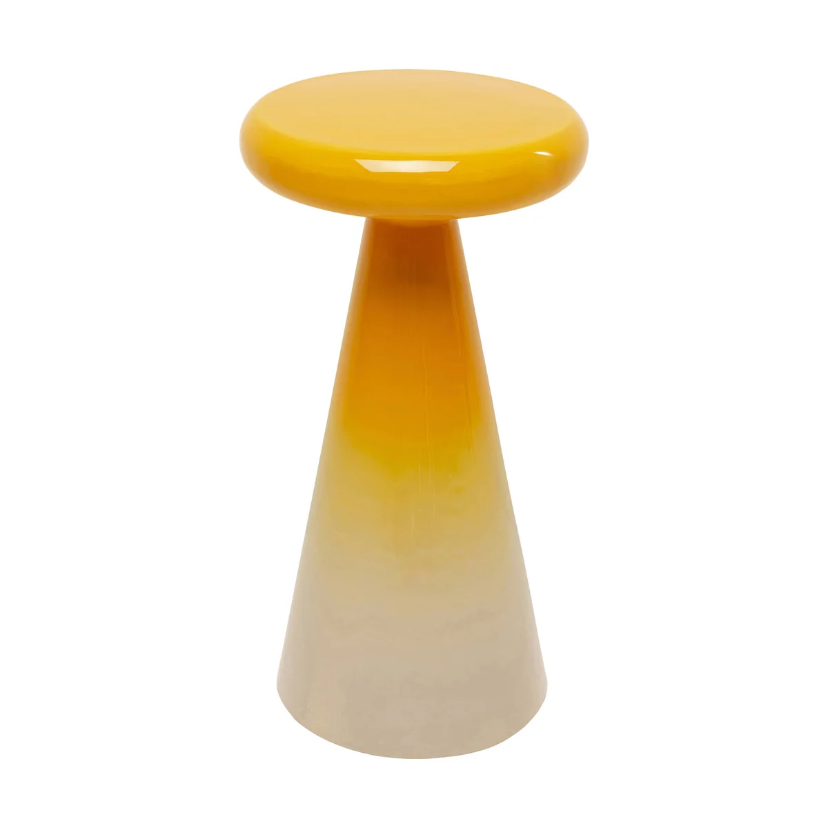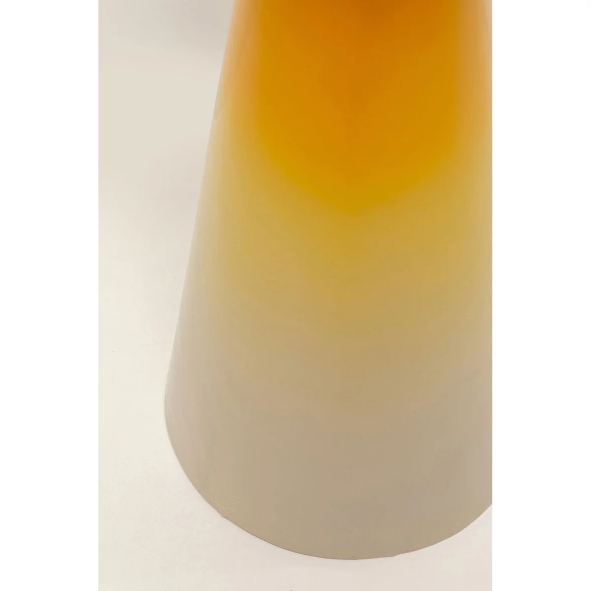 A touch of sunshine for any interior! This narrow side table delights with a gentle color gradient in warm yellow tones and gives rooms a fresh, light look. The organic shape of the table top harmonizes perfectly with the slim, conical base, while the glossy surface creates an elegant look. As a stylish shelf next to the sofa or armchair, as a cheerful accent in the hallway or as a radiant bedside table - a versatile design statement with a positive aura. Particularly beautiful in combination with light-colored wooden furniture or minimalist living styles.