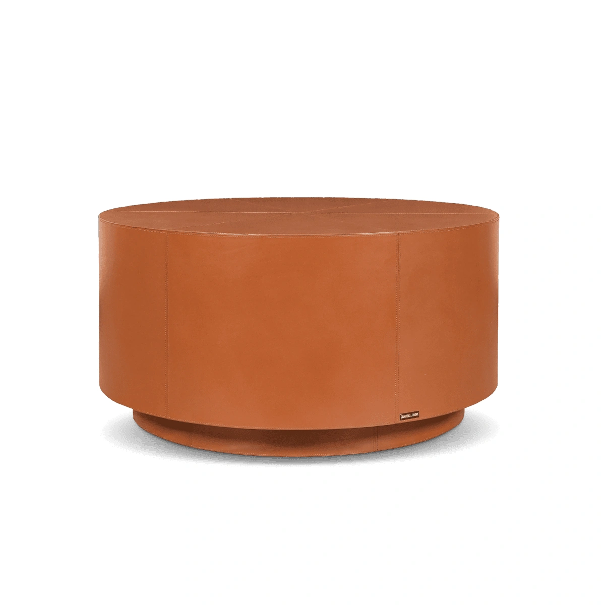 The key features of this coffee table include its circular design, smooth leather top, and a solid base made from a combination of plywood and MDF. Additionally, the table is trimmed with a soft suede fabric adding a touch of luxury.