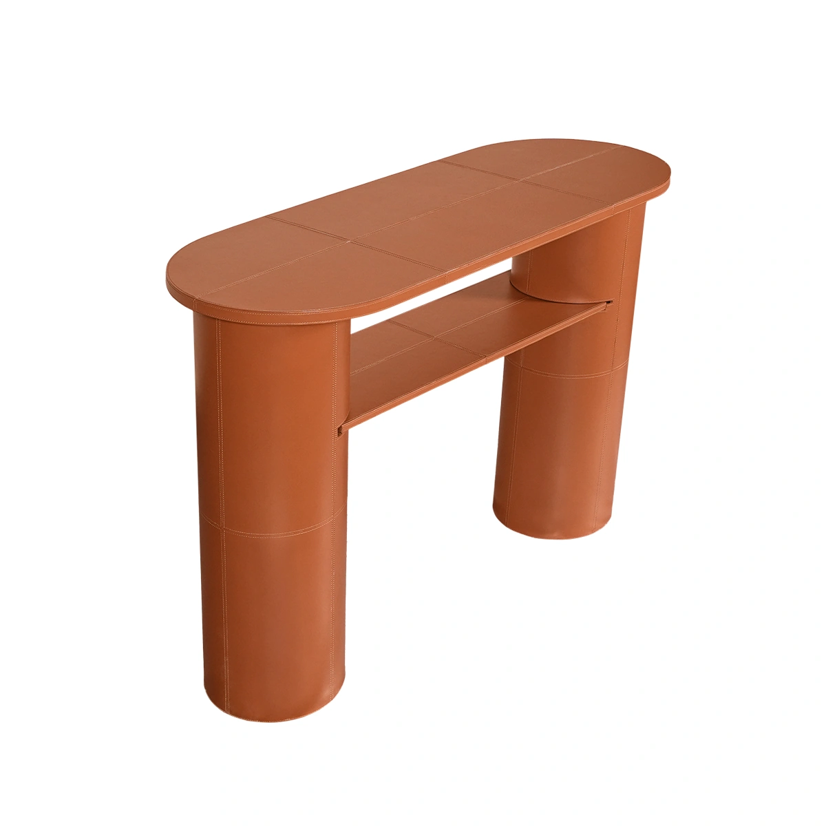 Ring Console Table in Brown Leather and Plywood - 120x46x85 cm