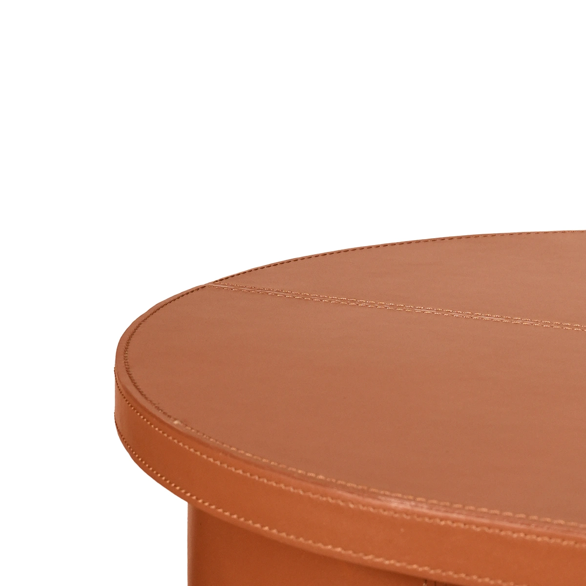 This 120x46x85 cm table is designed for both display and utility. The top is constructed of smooth finish leather, while the solid base is made from a mix of plywood and MDF. Adding to its aesthetic appeal is a trim of soft textured suede fabric.
