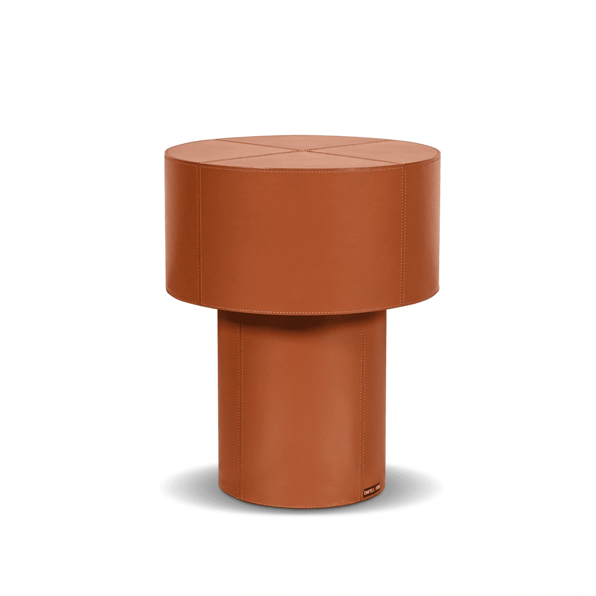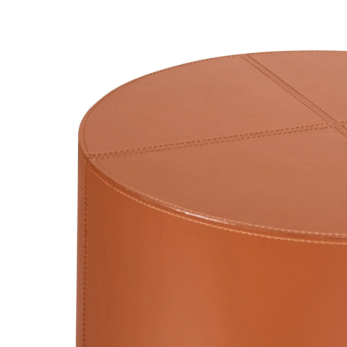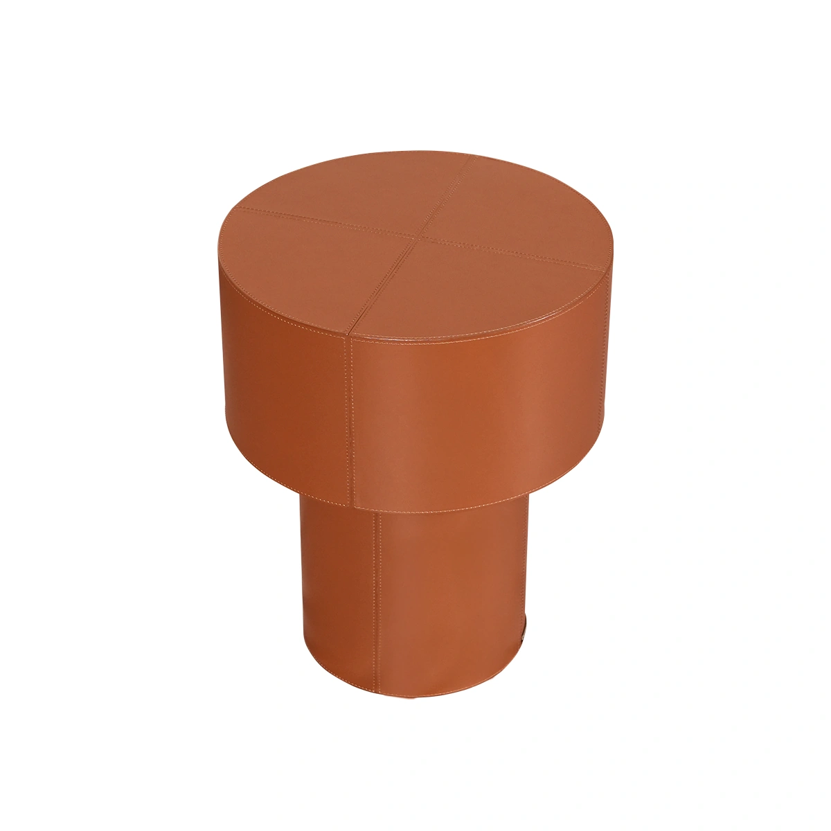 The stool is distinguished by its circular base and soft surface, rendered in a delectable combination of smooth leather and soft suede fabric. Structured support is provided by a sturdy frame of plywood and MDF. Measuring 40cm in length, 40cm in width, and 50cm in height, the stool is compact and versatile.