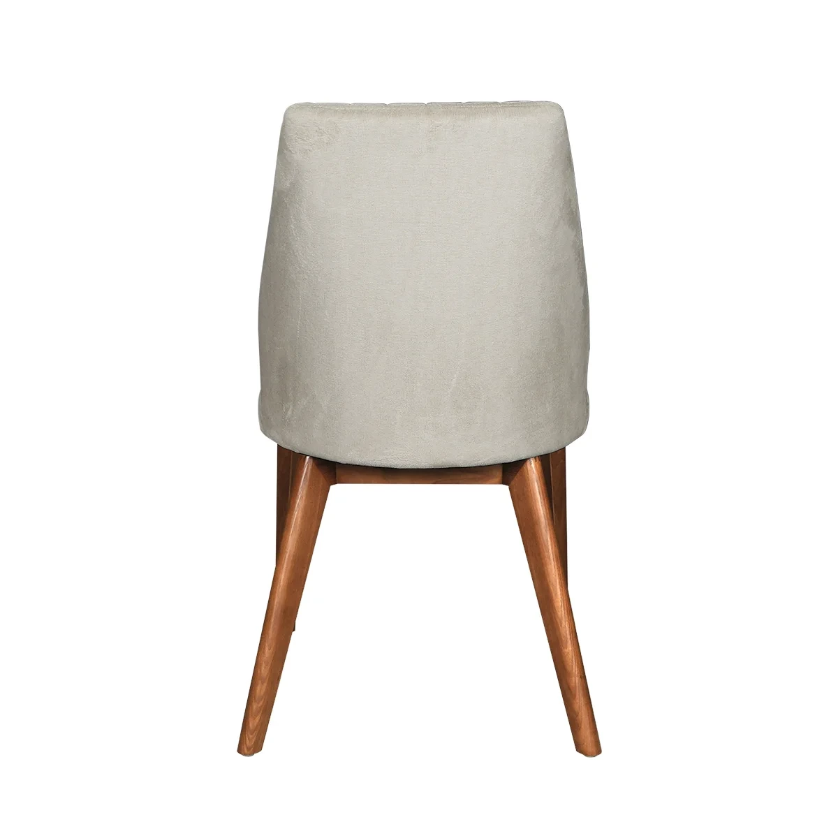 The Rochelle Dining Chair in Beige adds comfort and warmth to your dining area. Upholstered in soft fabric and set on walnut legs, it brings natural texture and stability, making it both practical for daily use and stylish for entertaining.