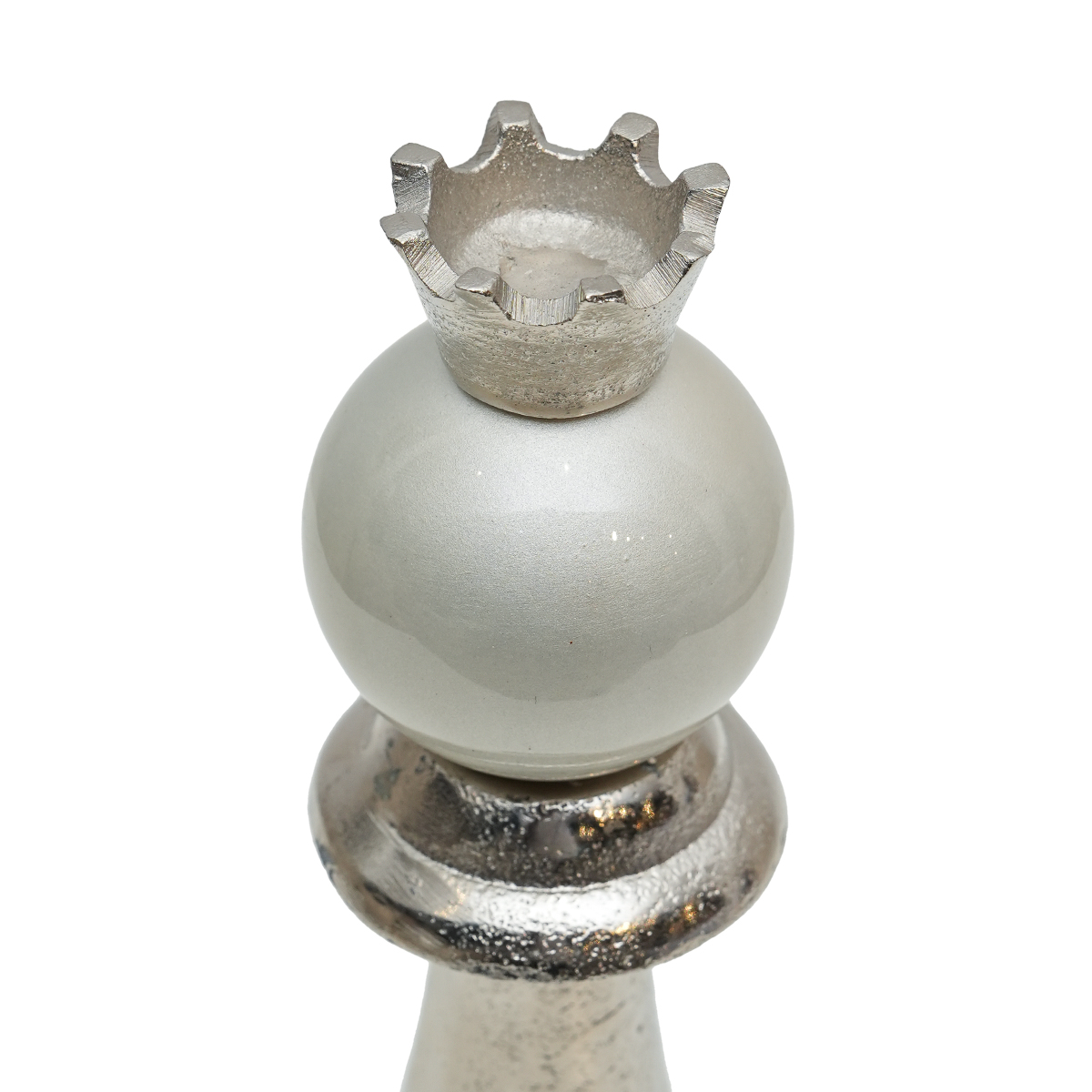 Rook Chess Figurine with White Ball in Raw Silver brings a touch of artful whimsy to your décor. Perfect for shelves or tabletops, it captures attention with its modern interpretation of a timeless form.