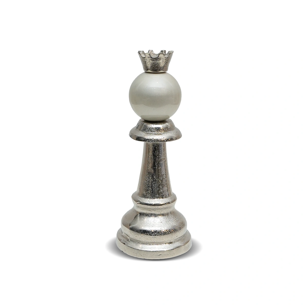 Add an artistic touch to your space with the Raw Silver Rook Chess Figurine with White Ball in Aluminium. This striking piece is a modern interpretation of a timeless form, perfect for the contemporary home.